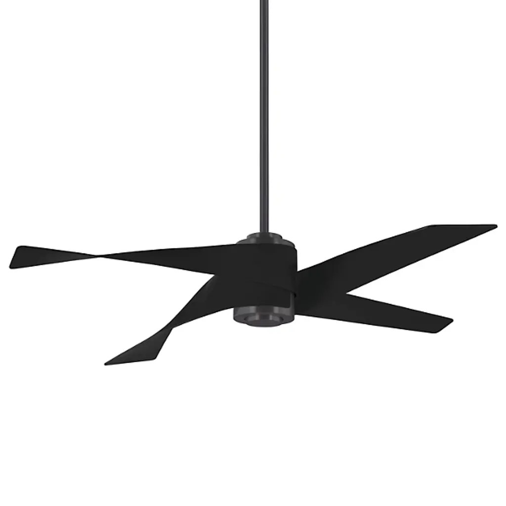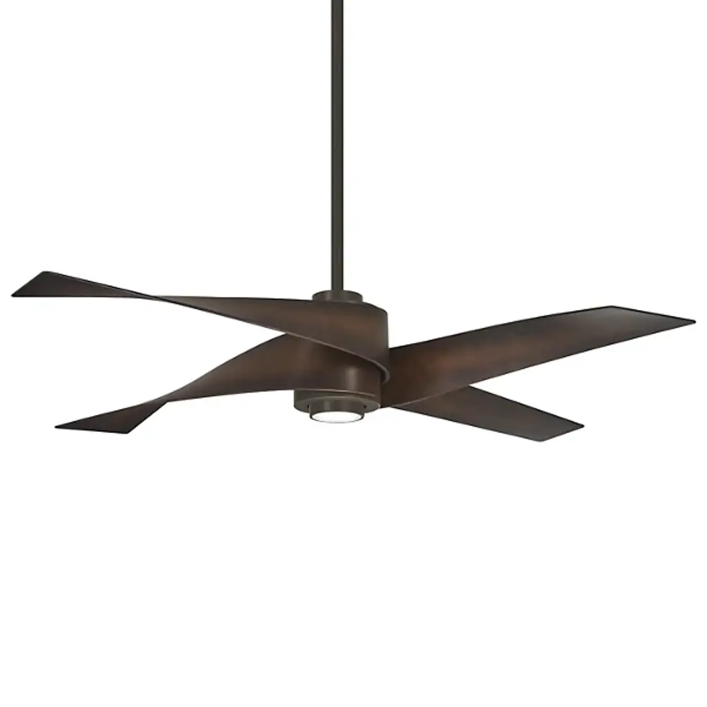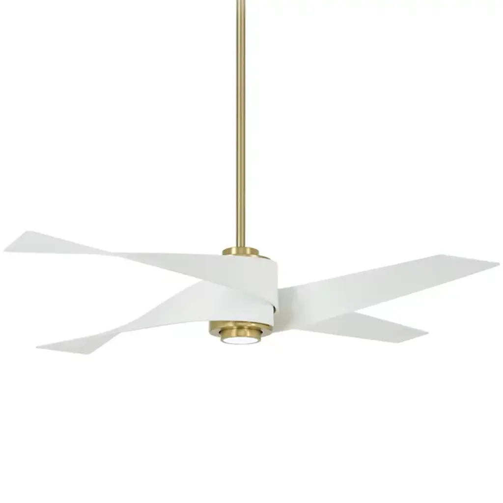 The Artemis IV LED Ceiling Fan by Minka Aire Fans sports fan blades that seemingly twist to make a groovy statement in any space. Crafted from metal and polymer plastic, the Artemis makes a grand statement with its visually captivating design. Four blades span 64 inches for ample airflow in small or large rooms. The fan also utilizes a dimmable, energy-efficient LED downlight with a rated life of 30,000 hours. Handheld remote control included for convenient use.