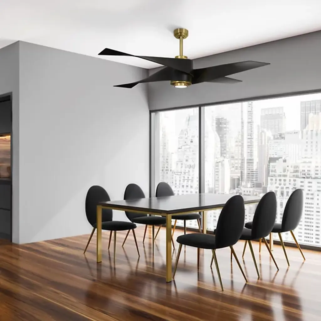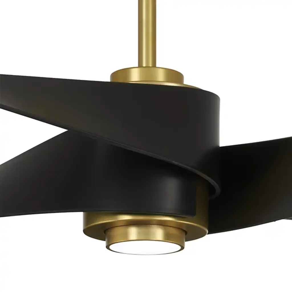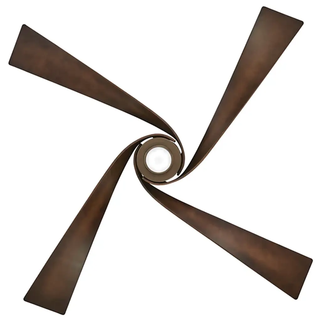 The Artemis IV LED Ceiling Fan by Minka Aire Fans sports fan blades that seemingly twist to make a groovy statement in any space. Crafted from metal and polymer plastic, the Artemis makes a grand statement with its visually captivating design. Four blades span 64 inches for ample airflow in small or large rooms. The fan also utilizes a dimmable, energy-efficient LED downlight with a rated life of 30,000 hours. Handheld remote control included for convenient use.