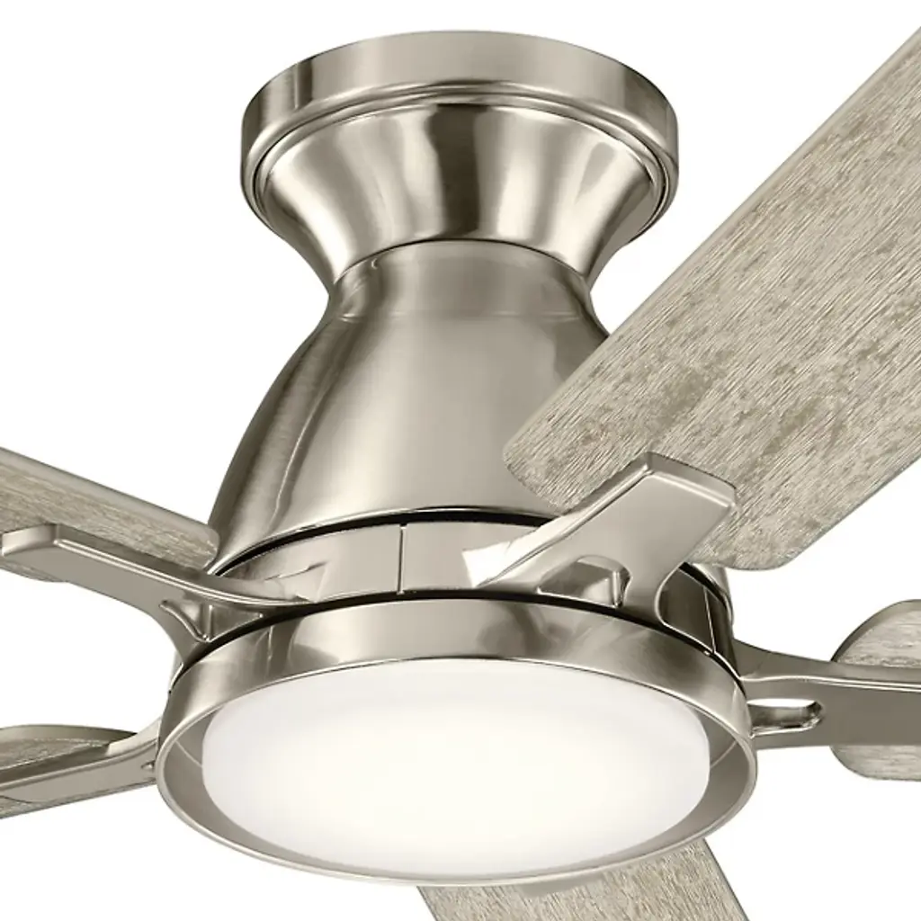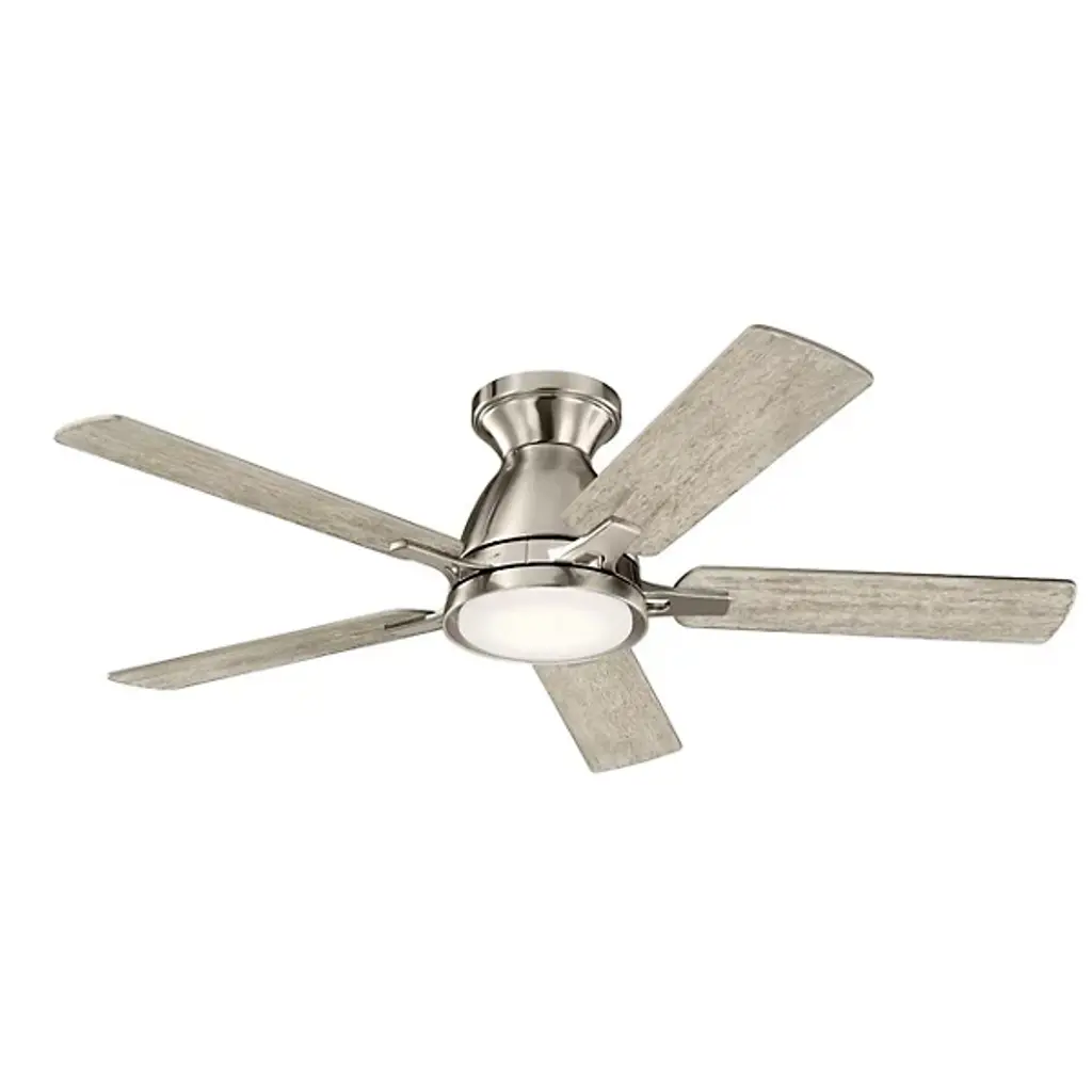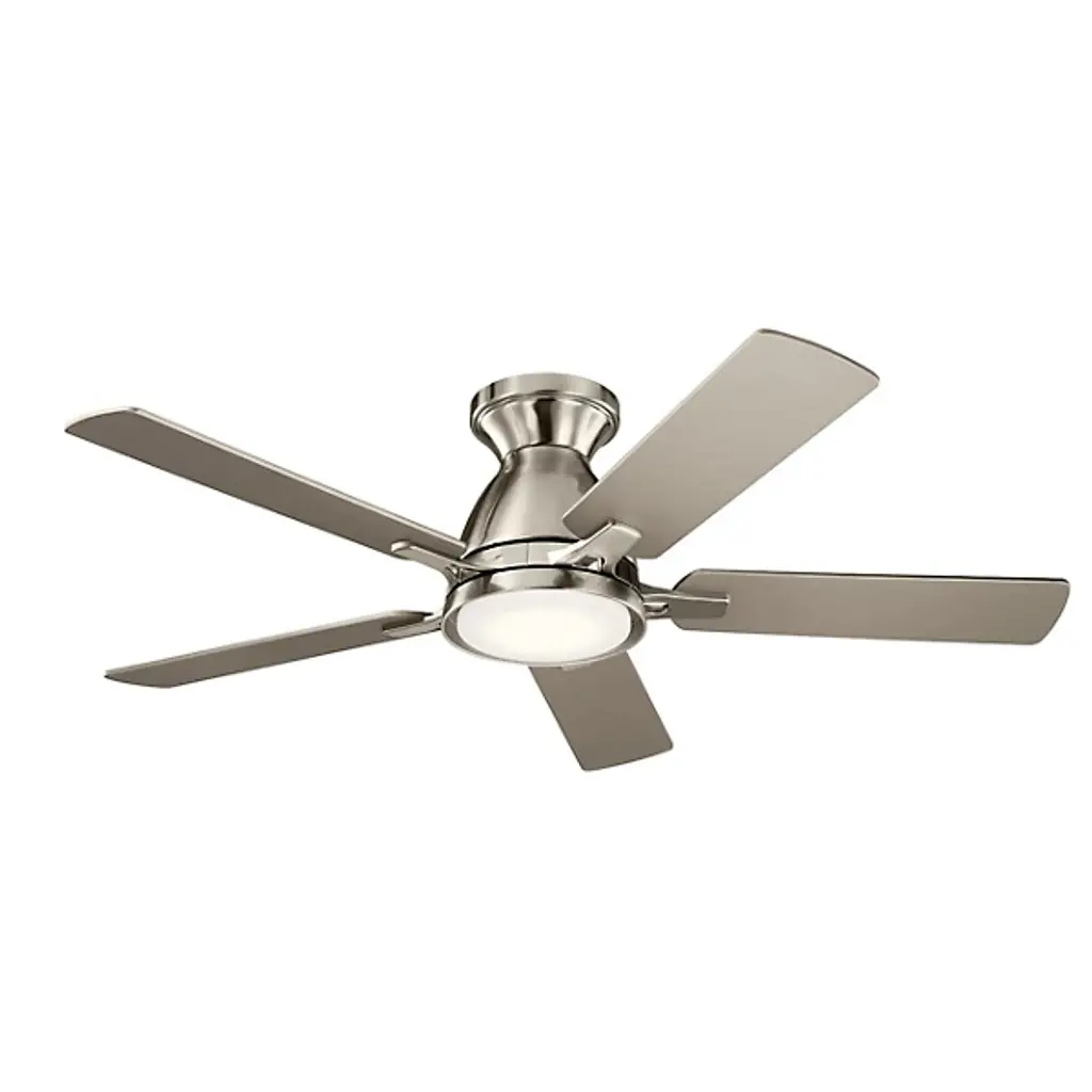 The Arvada LED Ceiling Fan by Kichler is a handsome, contemporary addition to spaces. With a bold finish, the central body of this ceiling fan contains an integrated light kit that filters a layer of energy-efficient illumination through a smooth, round diffuser to bring a bright touch to its surroundings. The five blades bring a simple, classic touch to this design and help to create a comfortable environment as they cycle through three speeds thanks to an easy-to-use remote.