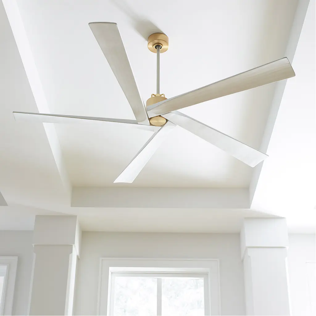 Aspen offers a sleek, minimalistic design that blends into any modern environment. Made with metal for lasting durability, Aspen delivers a delicate look while fluidly cycling large volumes of air through small or large spaces. The Sean Lavin Aspen 60 in Burnished Brass features a 120.0 X 25.0 6 speed motor with a Thirteen degree blade pitch.