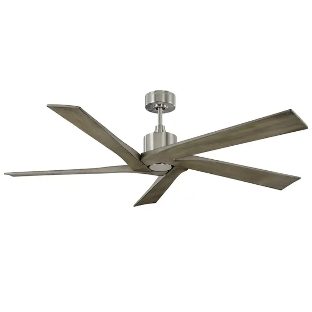 The Aspen Ceiling Fan is a stunning statement piece with natural wood elements that help to elevate the style of any living space. Each of its five, carved wooden blades graciously curves around the DC motor offering a unique pentagonal appearance. Enjoy the cool comforts powered by a premium and precisely balanced motor. Air will circulate quietly and vigorously from the fan's 56-inch blade span, throughout the home, wobble-free.