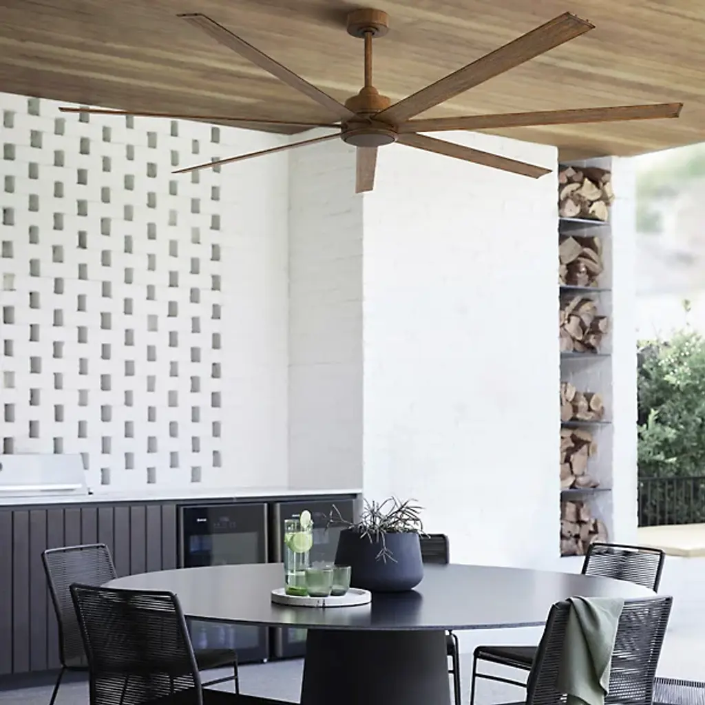The Atlanta Lucci Air Indoor/Outdoor LED Ceiling Fan from Beacon Lighting offers a commanding, contemporary character able to cool large indoor or outdoor gathering spaces. A DC motor powers seven slender metal blades at six adjustable speeds around a central LED lamp, delivering a silent breeze with pure functionality. DC motors are 65% more efficient than comparable AC motors. The central light is also efficient and dimmable through three steps, delivering comfort with the tap of the included handheld remote.