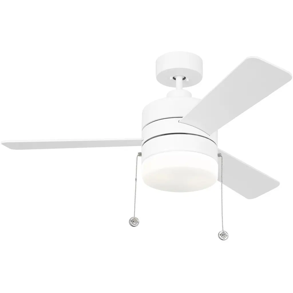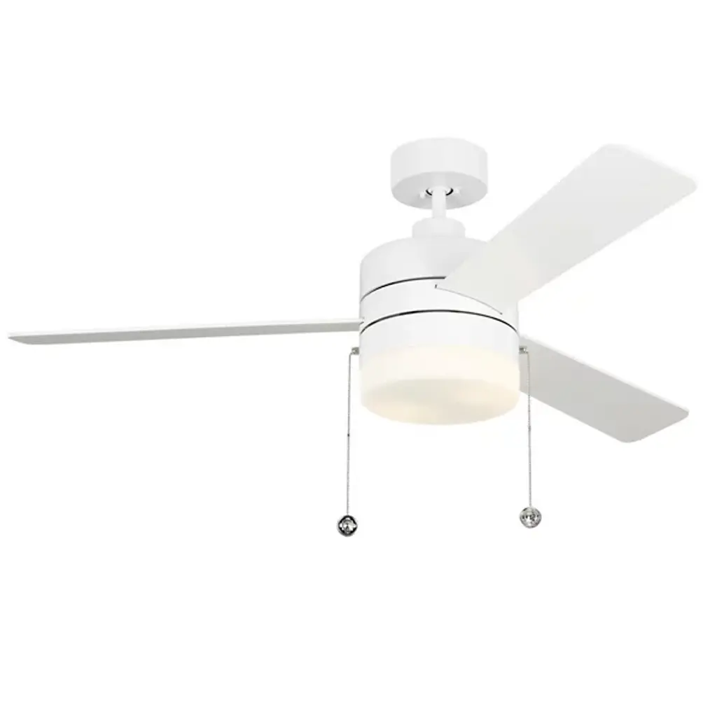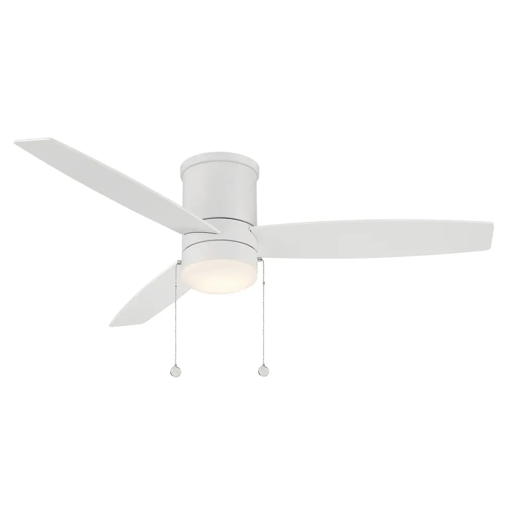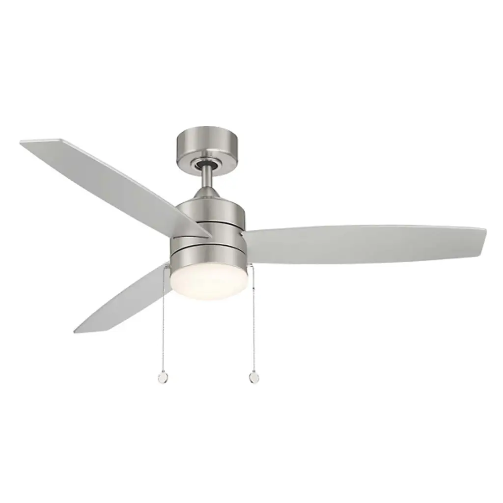 Presented by WAC Lighting, the Atlantis LED Ceiling Fan offers a basic pull-chain fan with an optional wall control. Secured from above, the fan housing supports the rounded steel housing for the fan’s three sleek blades, with three speeds to choose from. A damp-listed and energy-efficient integrated LED luminaire at the center of the fixture evokes a wash of bright, ambient light, while the light and fan are separately controlled by prominent pull chains to ensure the ideal combination of light and breeze.