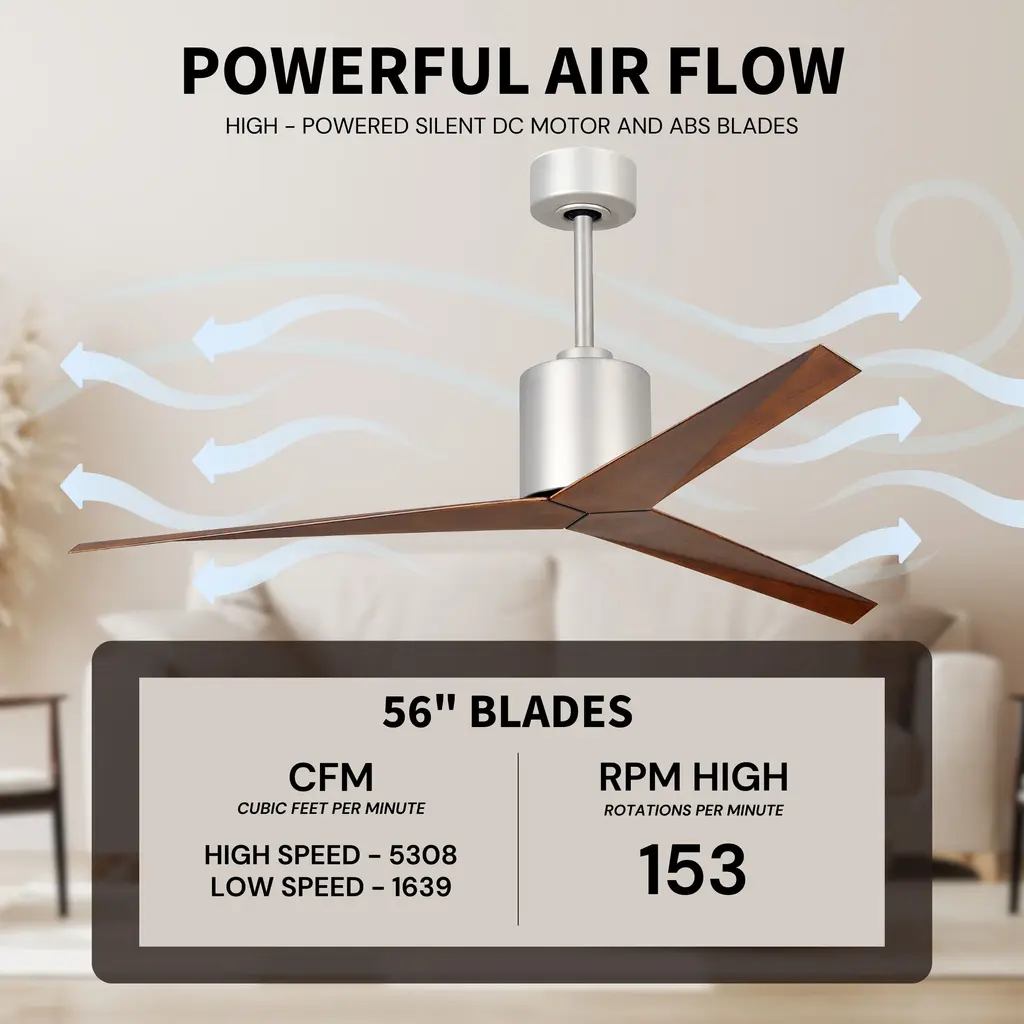 Atlas Eliza 56 Inch Brushed Nickel With Walnut Tone Blades Ceiling Fan, Paddle Fan