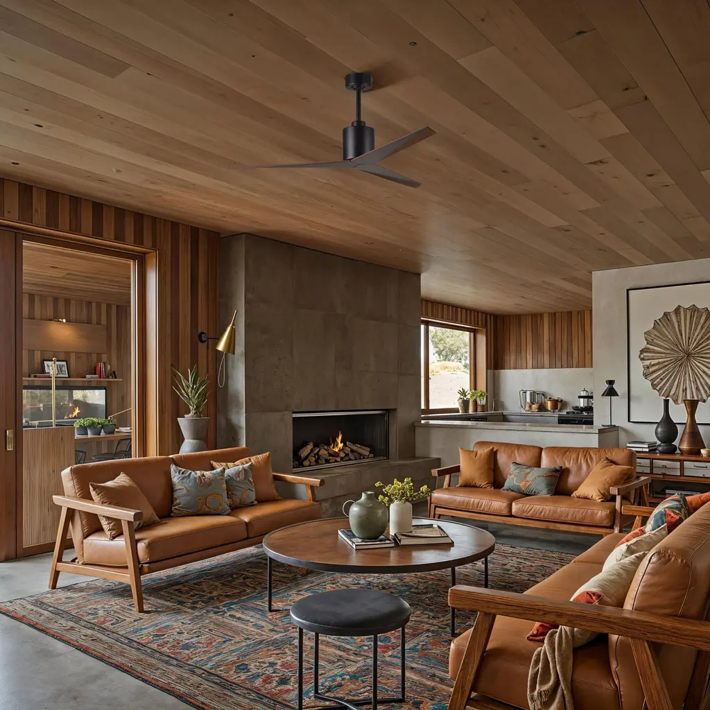 Atlas Eliza 56 Inch Matte Black With Walnut Tone Blades Ceiling Fan, Paddle Fan