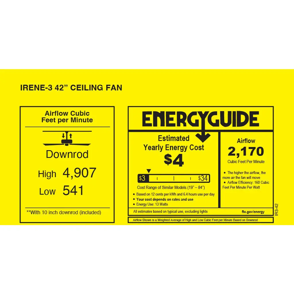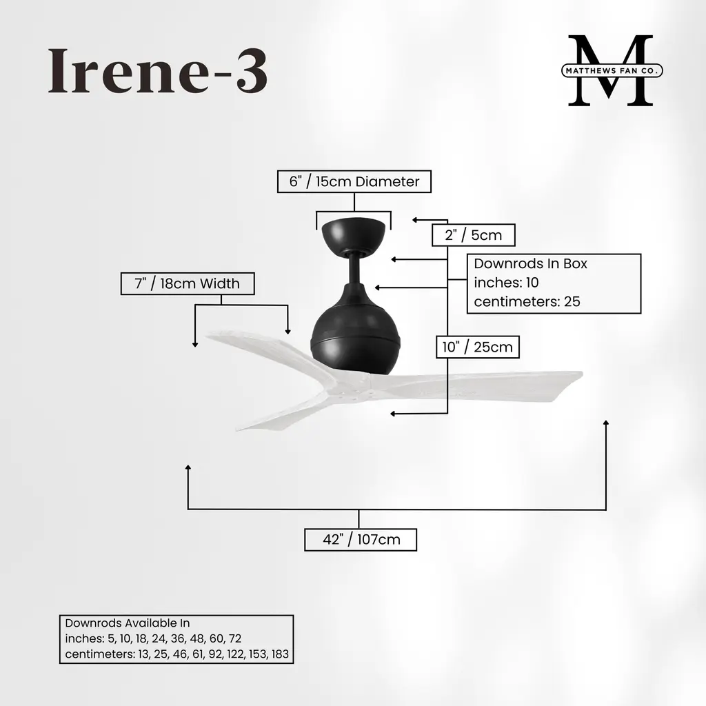 Atlas Irene-3 42 Inch Matte Black With Matte White Blades Paddle Fan, Atlas