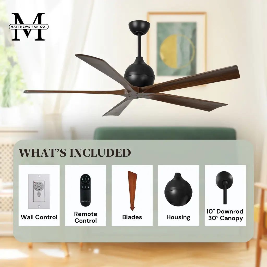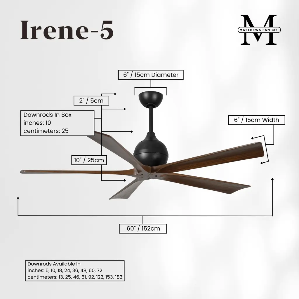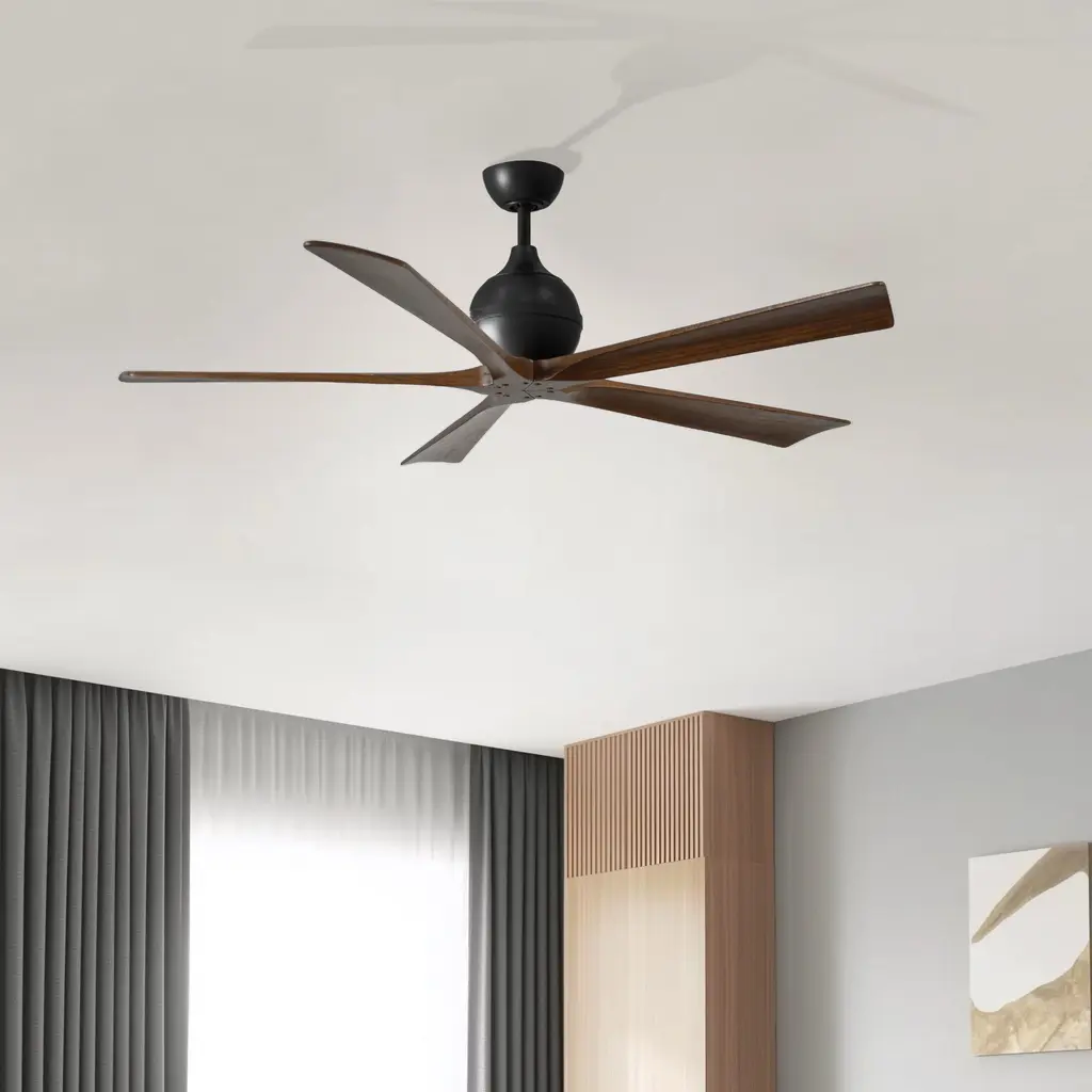 Atlas Irene-5 60 Inch Matte Black With Walnut Tone Blades Paddle Fan, Paddle Fan