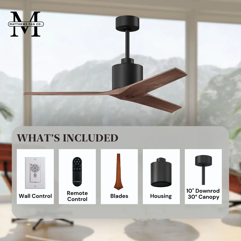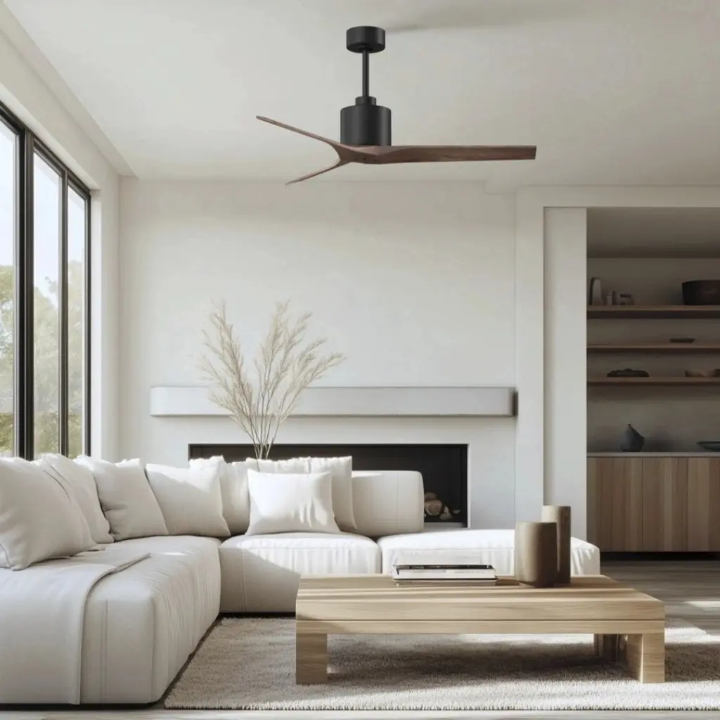 Atlas Mollywood 52 Inch Matte Black With Walnut Tone Blades Ceiling Fan, Atlas