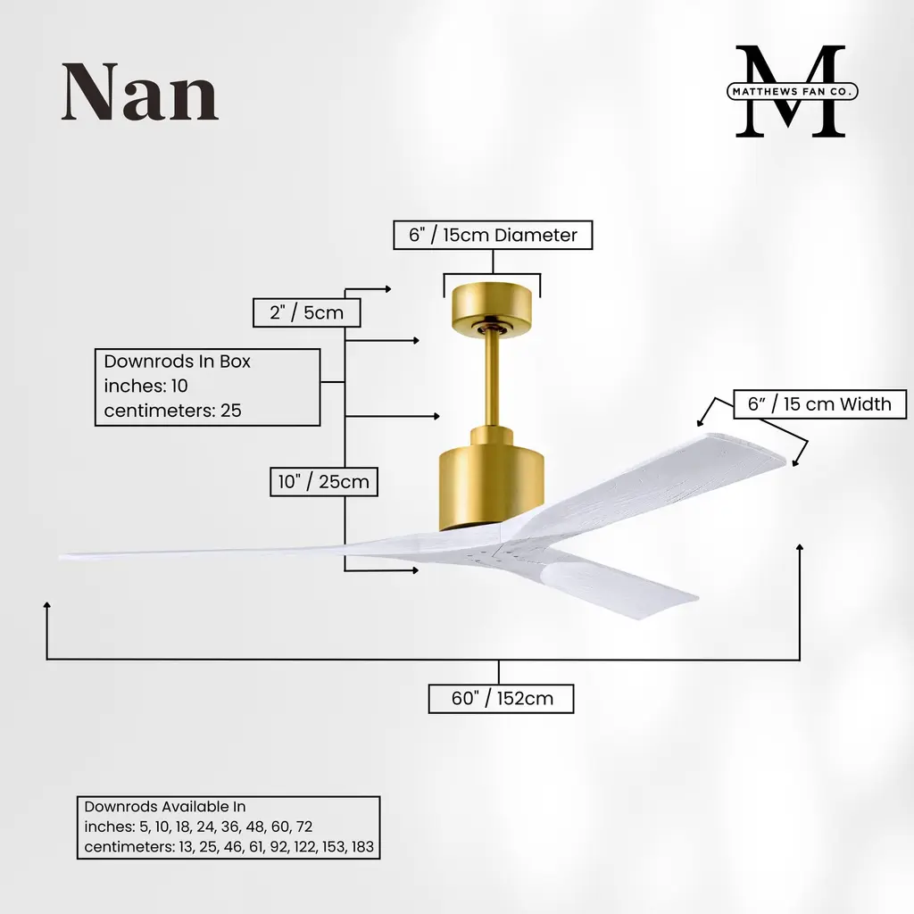 Atlas Nan 60 Inch Brushed Brass With Matte White Blades Ceiling Fan
