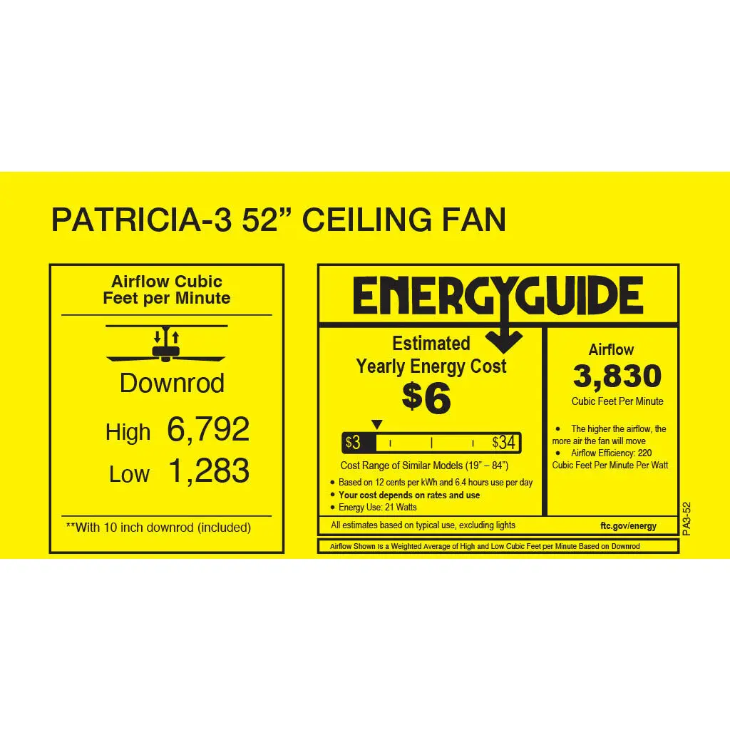 Atlas Patricia-3 52 Inch Gloss White With Matte White Blades Ceiling Fan, Atlas