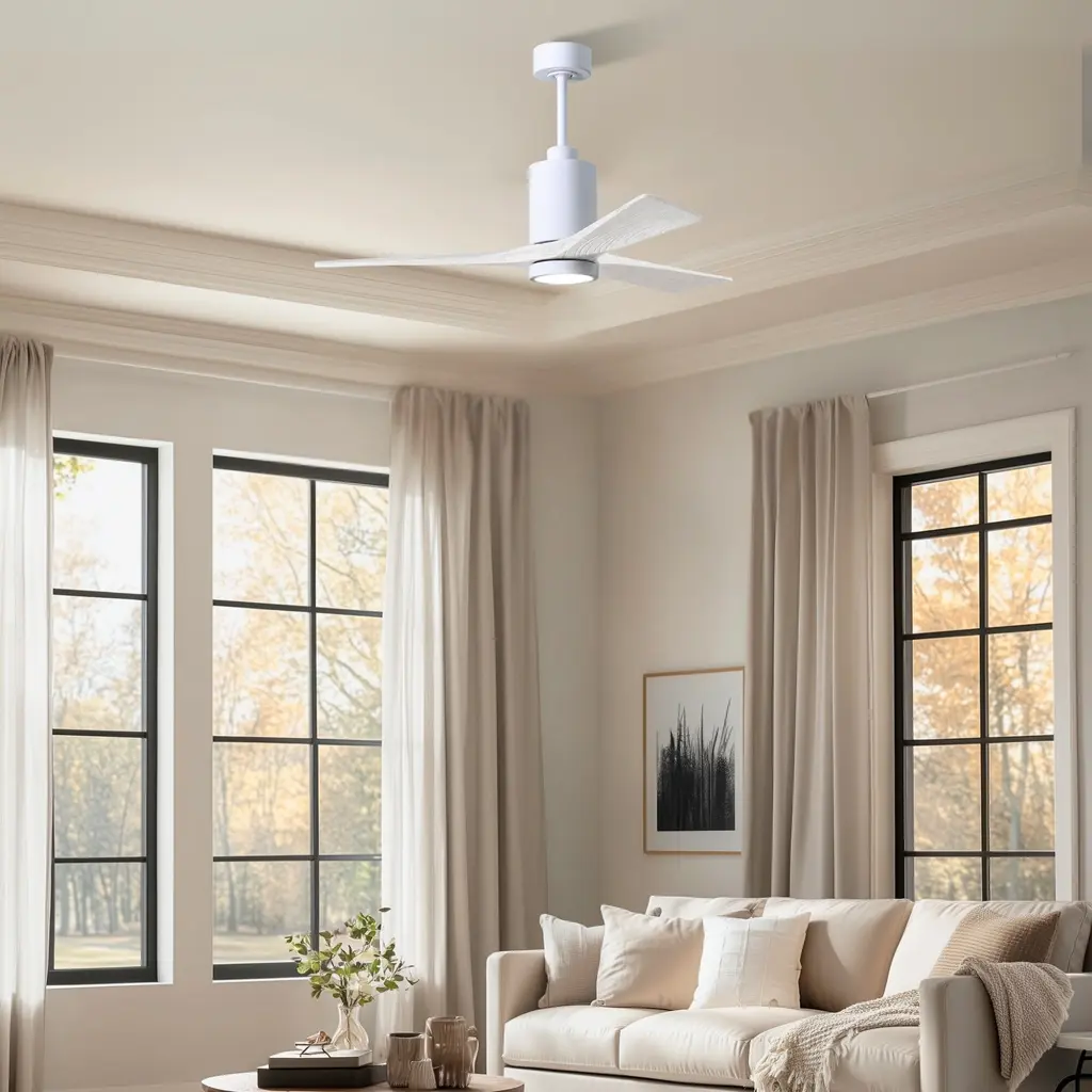 A complement to any commercial or residential space, the Patricia 3 seamlessly combines innovation with simple, refined design. Its elegant aesthetic belies its robust construction. Solid wood blades revolve around a balanced, cylindrical DC motor housing. Air is circulated efficiently with barely more than a whisper. An eco-conscious 5CCT LED color changing light kit completes the package, making Patricia 3 sophisticated, efficient and green.