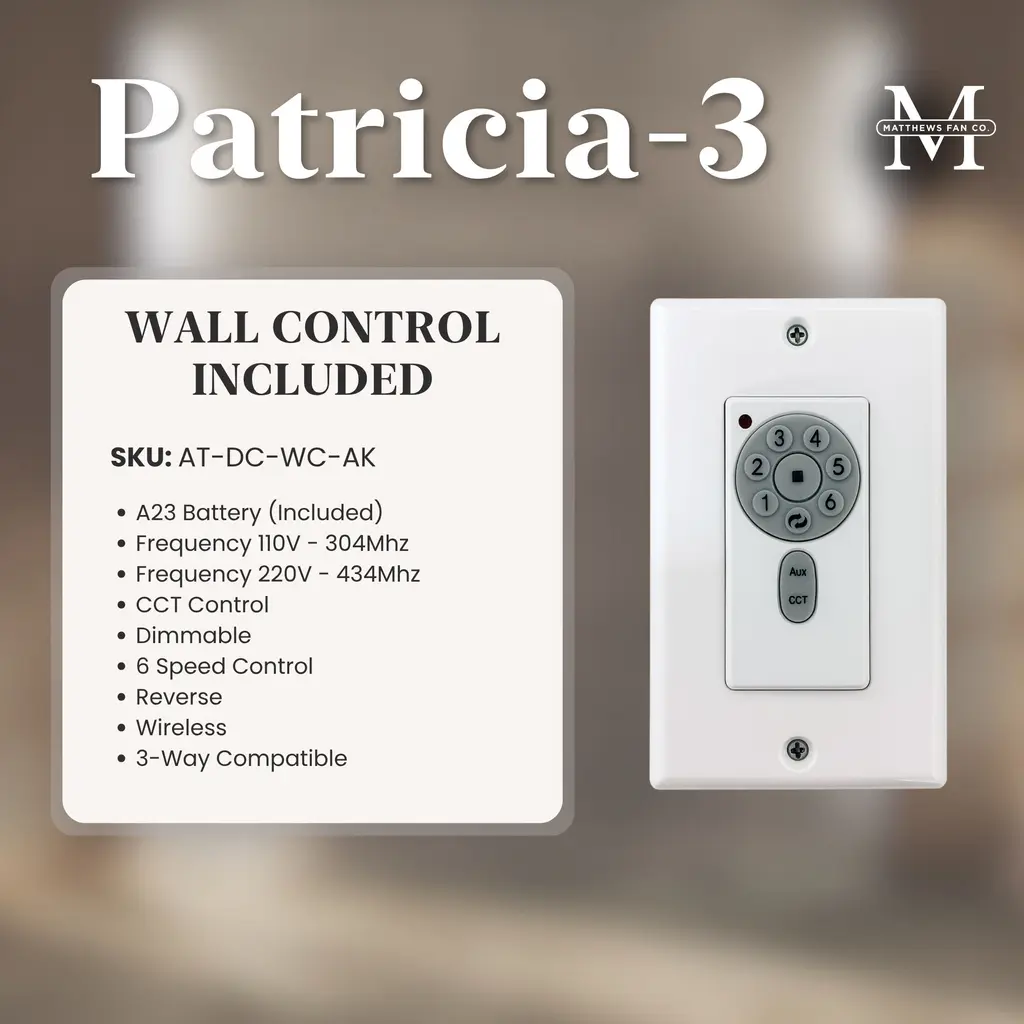 A complement to any commercial or residential space, the Patricia 3 seamlessly combines innovation with simple, refined design. Its elegant aesthetic belies its robust construction. Solid wood blades revolve around a balanced, cylindrical DC motor housing. Air is circulated efficiently with barely more than a whisper. An eco-conscious 5CCT LED color changing light kit completes the package, making Patricia 3 sophisticated, efficient and green.