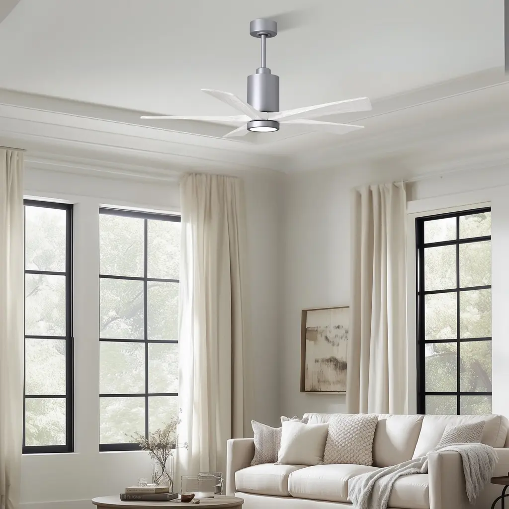 Atlas Patricia-5 52 Inch Brushed Nickel With Matte White Blades Ceiling Fan, Atlas
