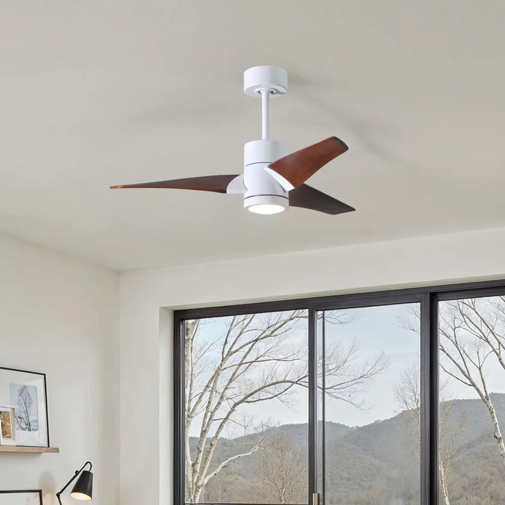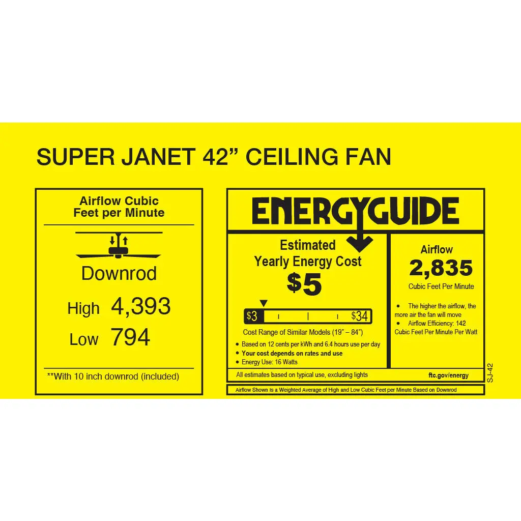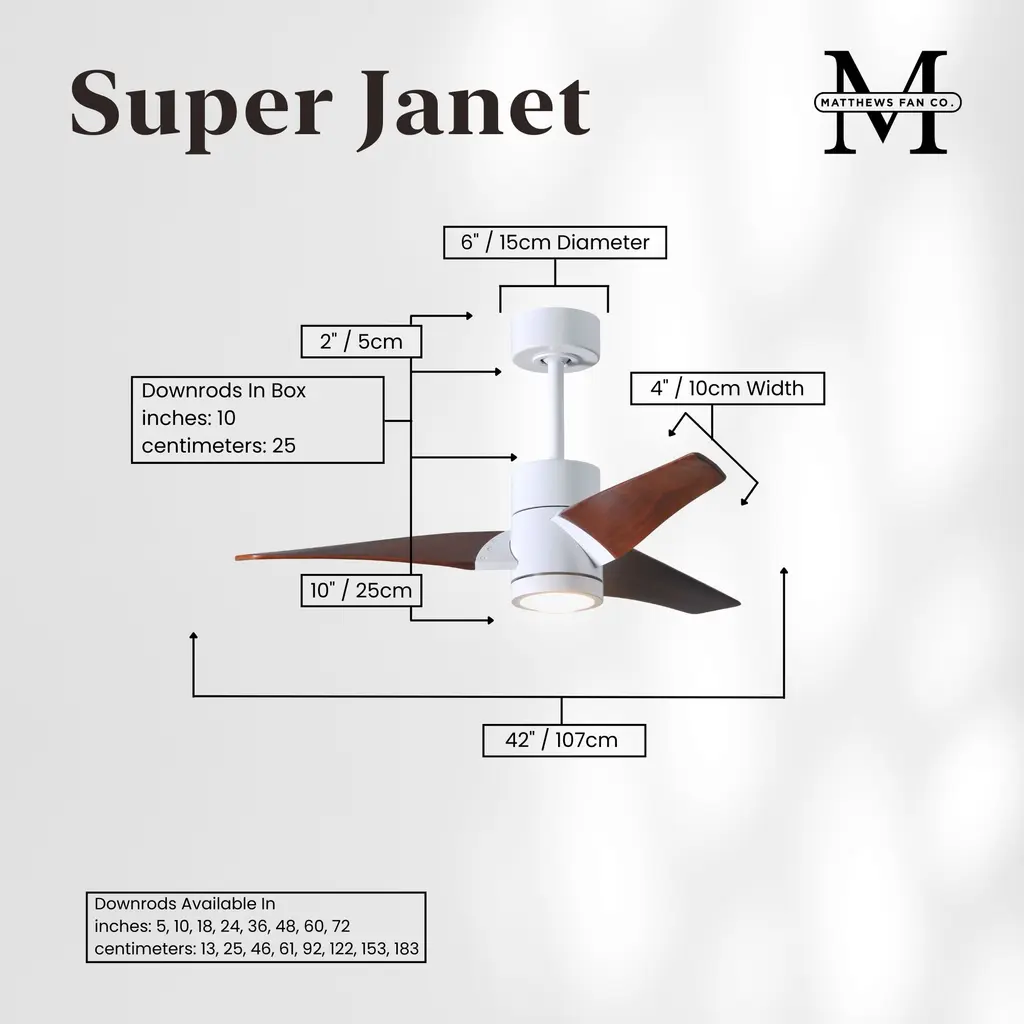 The Super Janets remarkable design and solid construction in cast aluminum and heavy stamped steel make it a staple piece in any commercial or residential space. Unlike a traditional ceiling fan, the Super Janet blades are angled and attached to the fan body, making for an eye-catching look. Moving air with barely a whisper, its efficient DC motor turns solid wood blades in walnut or Barn Wood Tones. An eco-conscious LED light kit with light cover completes the package. Sophisticated, efficient and green, Super Janet carries a limited lifetime warranty.
