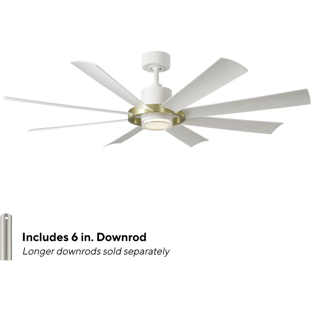 Aura 60 Inch Soft Brass And Matte White With Matte White Blades Downrod Ceiling Fan In Soft Brass Matte White