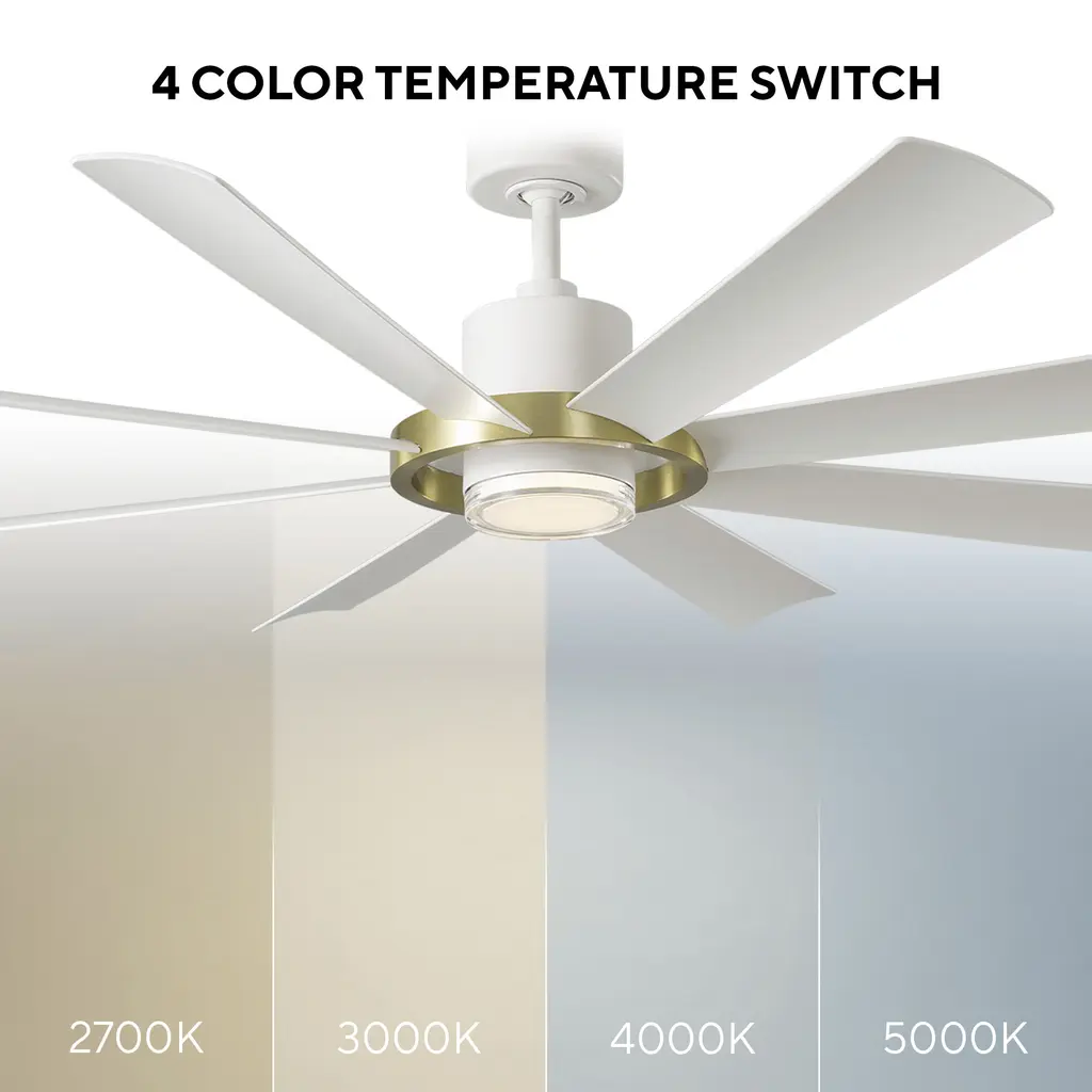 The sublime Aura Smart Ceiling Fan by Modern Forms defines the look and performance you desire in your bedroom, dining, or living area. A 60-inch sweep and a broad array of eight blades transport a swiftly moving surge of air across your room from an overhead silhouette with a cool cutting edge. Each blade is expertly engineered with a subtle curve to push a relaxed, comfortable breeze down over the room. Your remote control will commission one of its six speeds and drive the engine of comfort into your home.