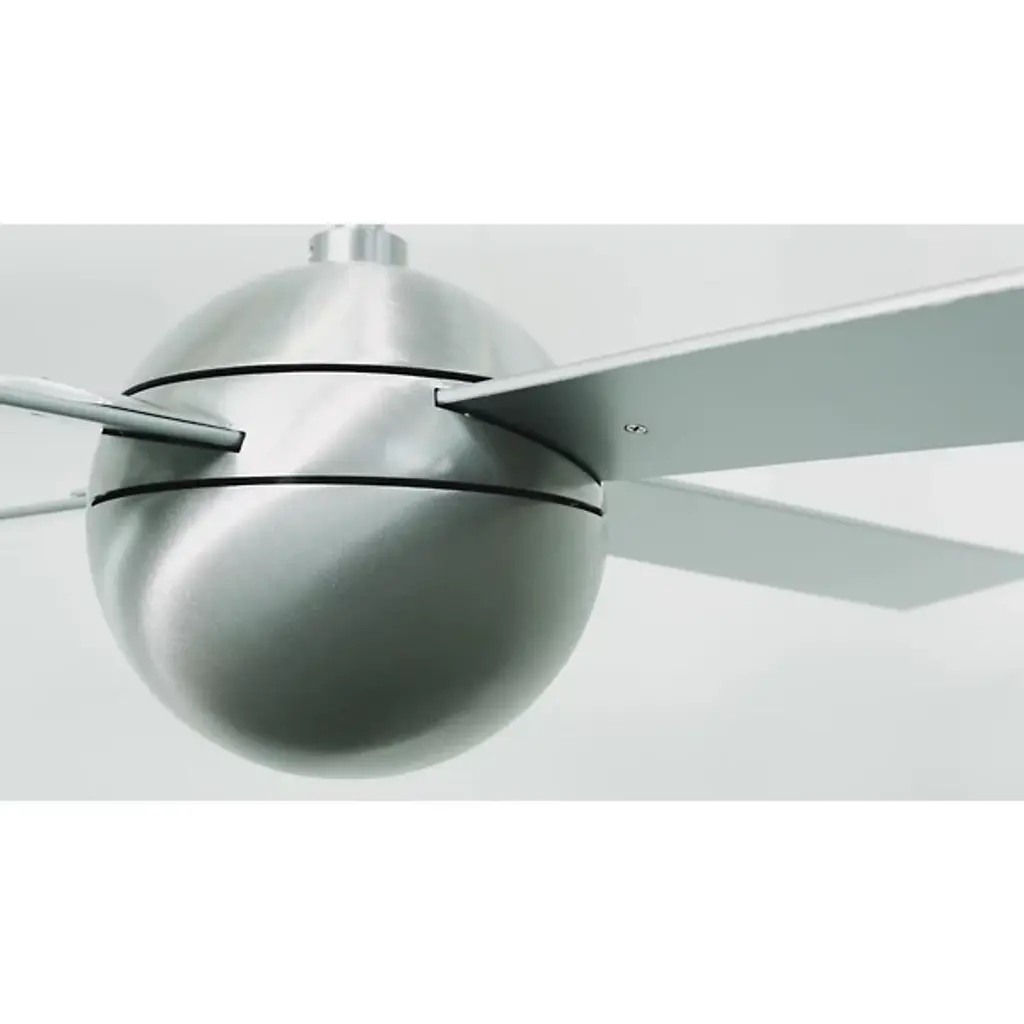 The Modern Fan Company Ball Ceiling Fan was designed by Ron Rezek as the epitome of The Modern Fan Company's minimalist approach to contemporary ceiling fan design. The central housing is a perfect sphere, from which four blades smoothly rotate. Available in two blade spans, as well as a variety of finishes, blade colors, lamping and control options.