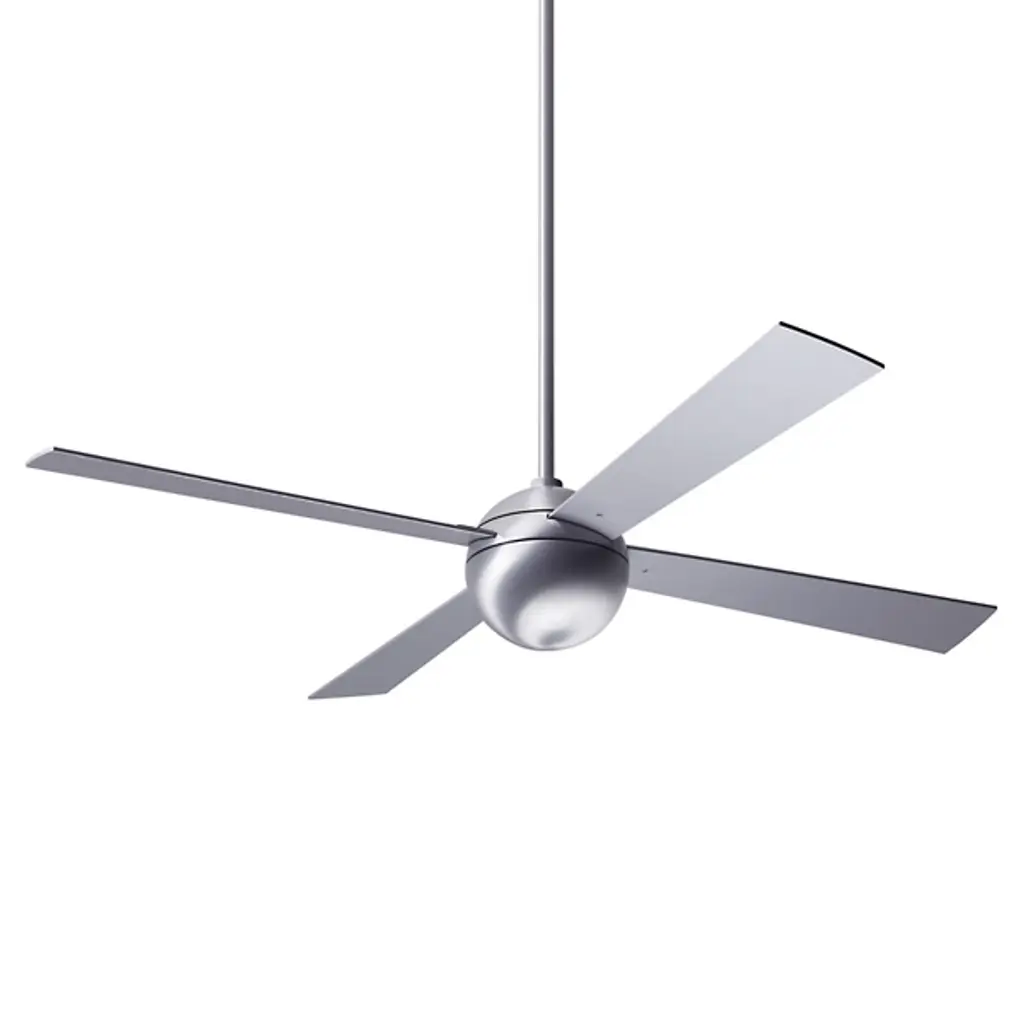 The Modern Fan Company Ball Ceiling Fan was designed by Ron Rezek as the epitome of The Modern Fan Company's minimalist approach to contemporary ceiling fan design. The central housing is a perfect sphere, from which four blades smoothly rotate. Available in two blade spans, as well as a variety of finishes, blade colors, lamping and control options.
