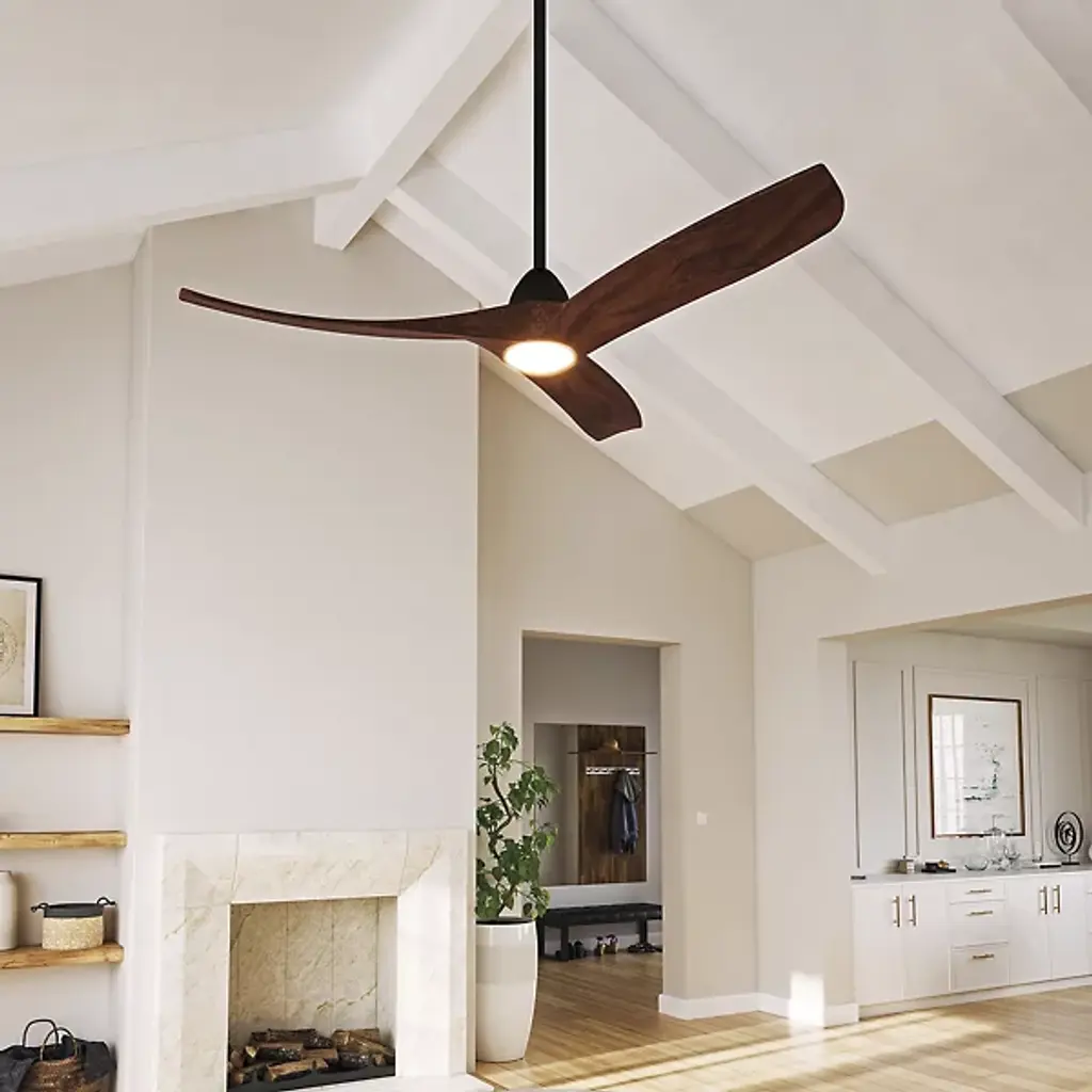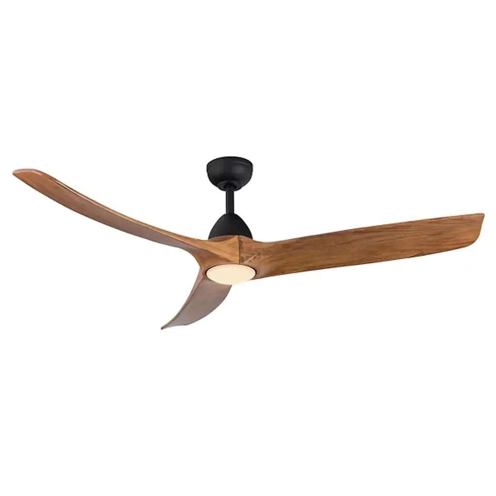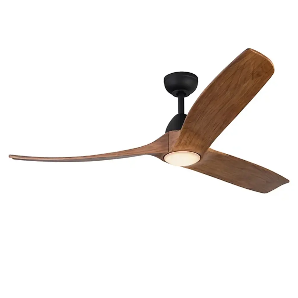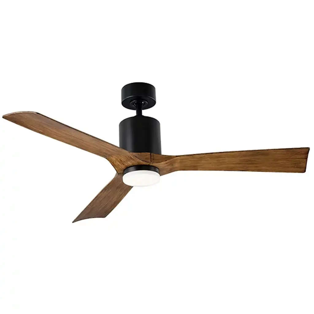 Introduce customizable light and cooling to your indoor spaces with the Baylor Smart LED Ceiling Fan from Kuzco Lighting, an expansive and inventive addition to your surroundings. This fan is carefully crafted with meticulous attention to detail, descending from a dome canopy via a short downrod, and enriching its environs with its contemporary 3-blade design, the wooden blades contrasting well with the matte black accents of its metal framing. Its distinctive aesthetic draws the eye, while smart fan technology through the Smart by Bond app or the provided handheld remote for effortless control makes using it a breeze and compatible with all manner of apps, from iHome, Alexa, and Google. Its energy-friendly LED lamping is dimmable and delivers adaptable comfort with 6 forward and reverse speeds.