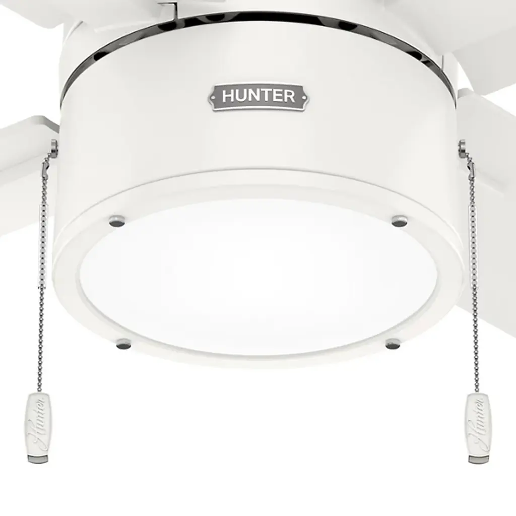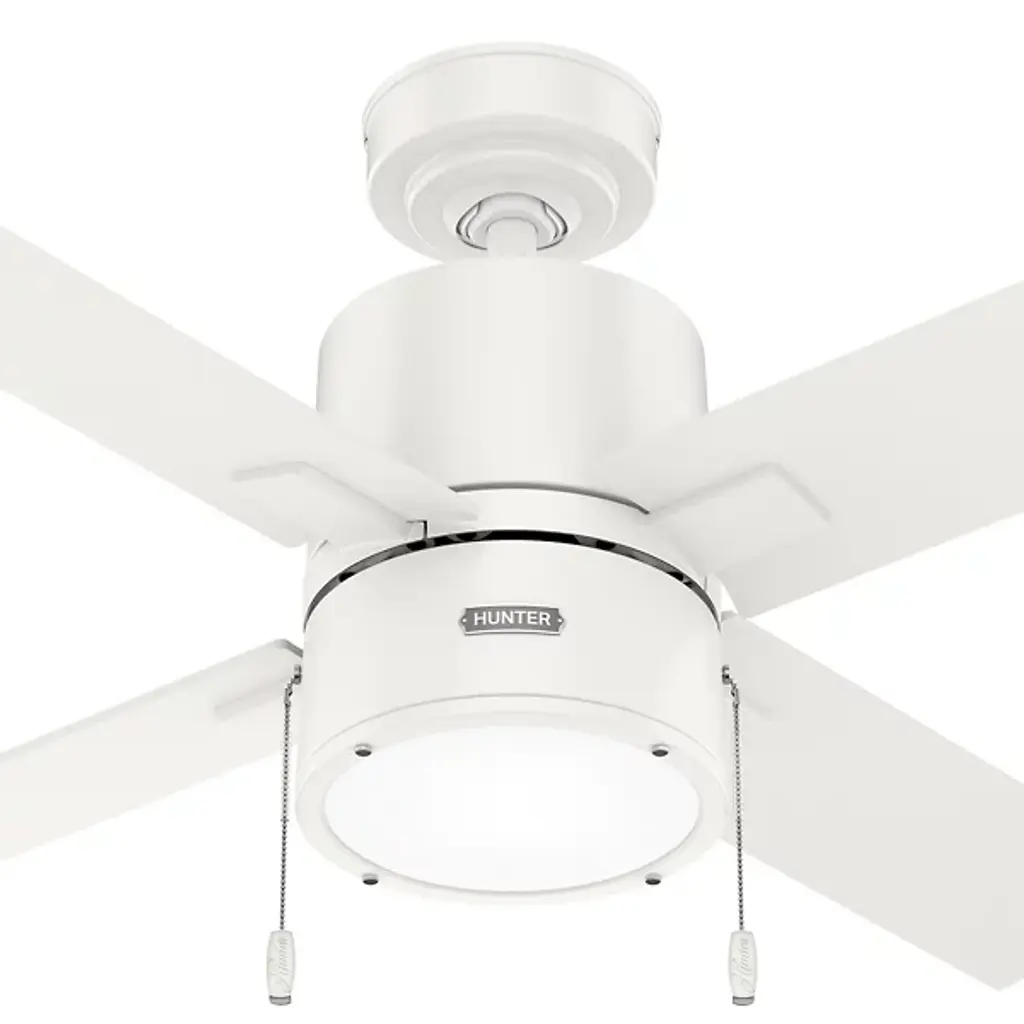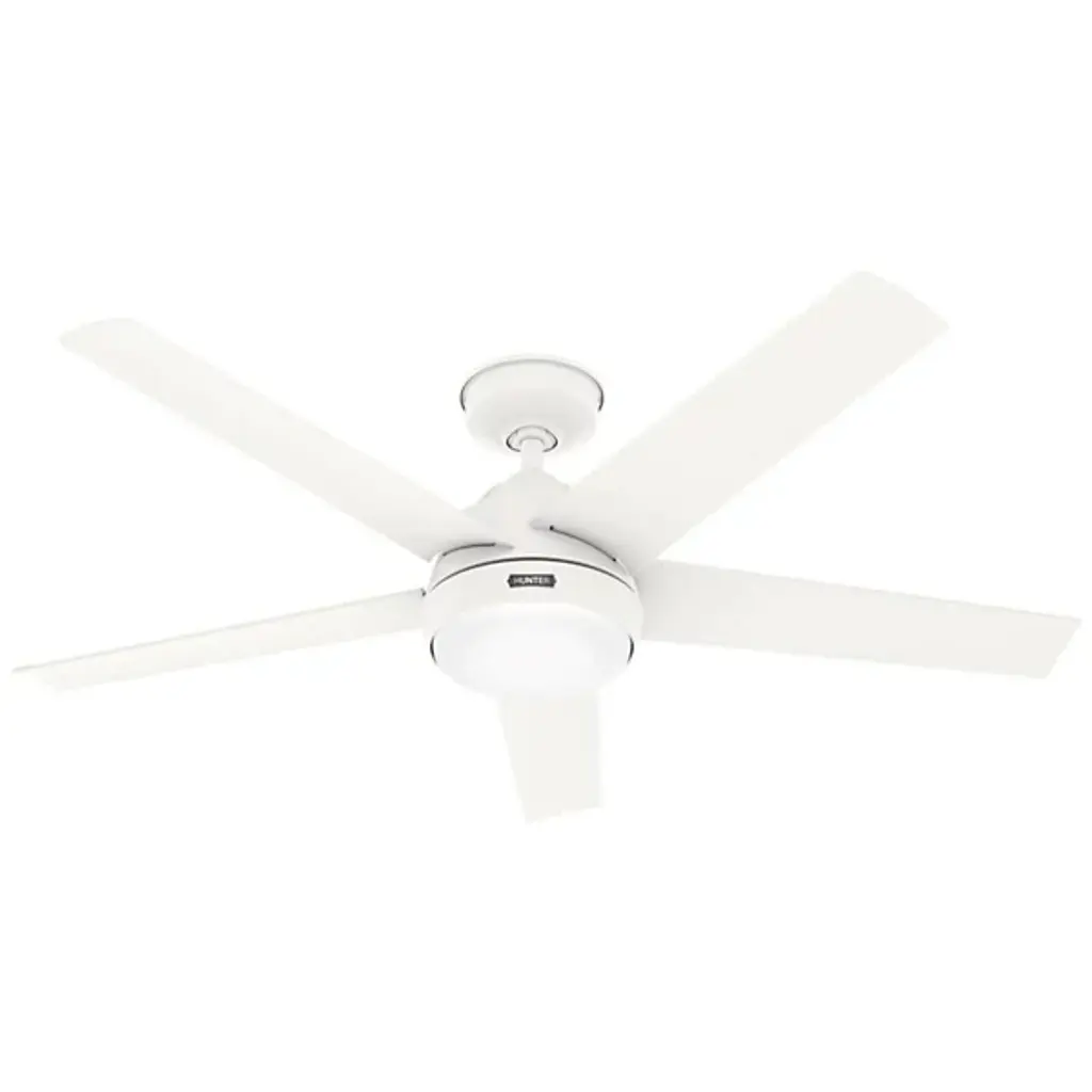 Shape the atmosphere of your space with the Beck Ceiling Fan with Light from Hunter Fans, a modern piece that elevates the ambiance with form and function. The central cylindrical housing complements the thin and sharply-honed blades that efficiently circulate the air. Perfect for warm or cool months, this piece ensures relaxation year-round. An LED rests at the center, behind a rounded diffuser made of painted white glass; it emits a bright and welcoming glow that pairs with the graceful blades for an unforgettable experience.