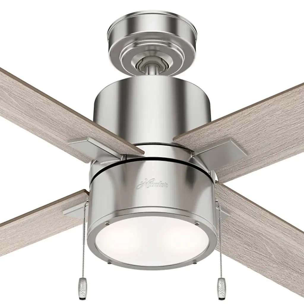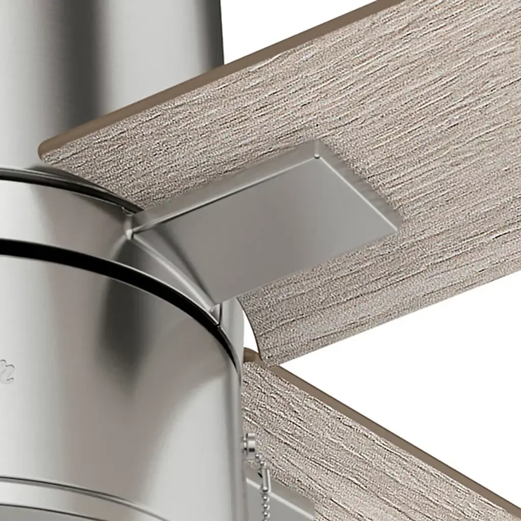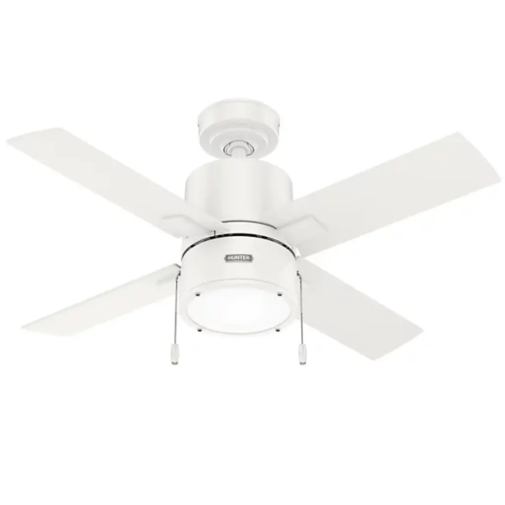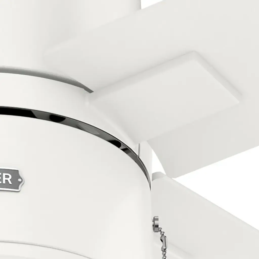 Shape the atmosphere of your space with the Beck Ceiling Fan with Light from Hunter Fans, a modern piece that elevates the ambiance with form and function. The central cylindrical housing complements the thin and sharply-honed blades that efficiently circulate the air. Perfect for warm or cool months, this piece ensures relaxation year-round. An LED rests at the center, behind a rounded diffuser made of painted white glass; it emits a bright and welcoming glow that pairs with the graceful blades for an unforgettable experience.