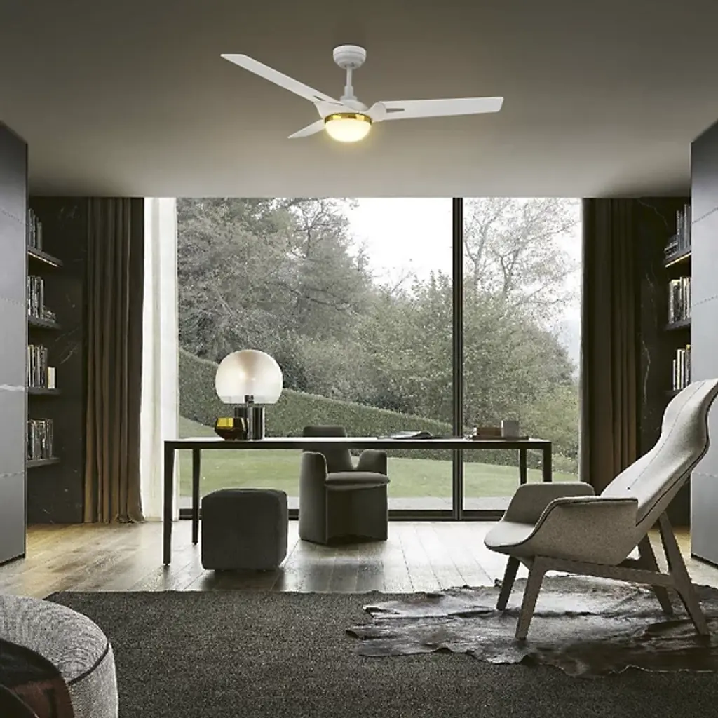 Complete your decorative arrangement with the Bedford LED Smart Ceiling Fan by Carro USA. A ceiling canopy secures a downrod which allows your fan to maintain midair suspension with ease. Stylishly slanted blades of high-quality plywood by a DC motor which is discreetly covered. Air is readily circulated so that you can quickly cool down. An LED light below the fan’s blades radiates light throughout your contemporary room. This advanced fan syncs with Wifi-apps, providing voice control capabilities when paired with Amazon Alexa, Siri, or Google Assistant.