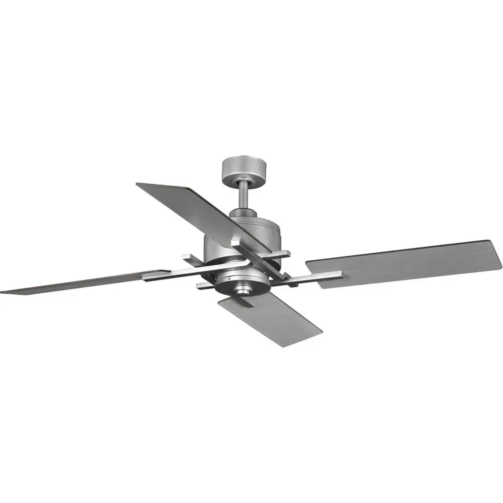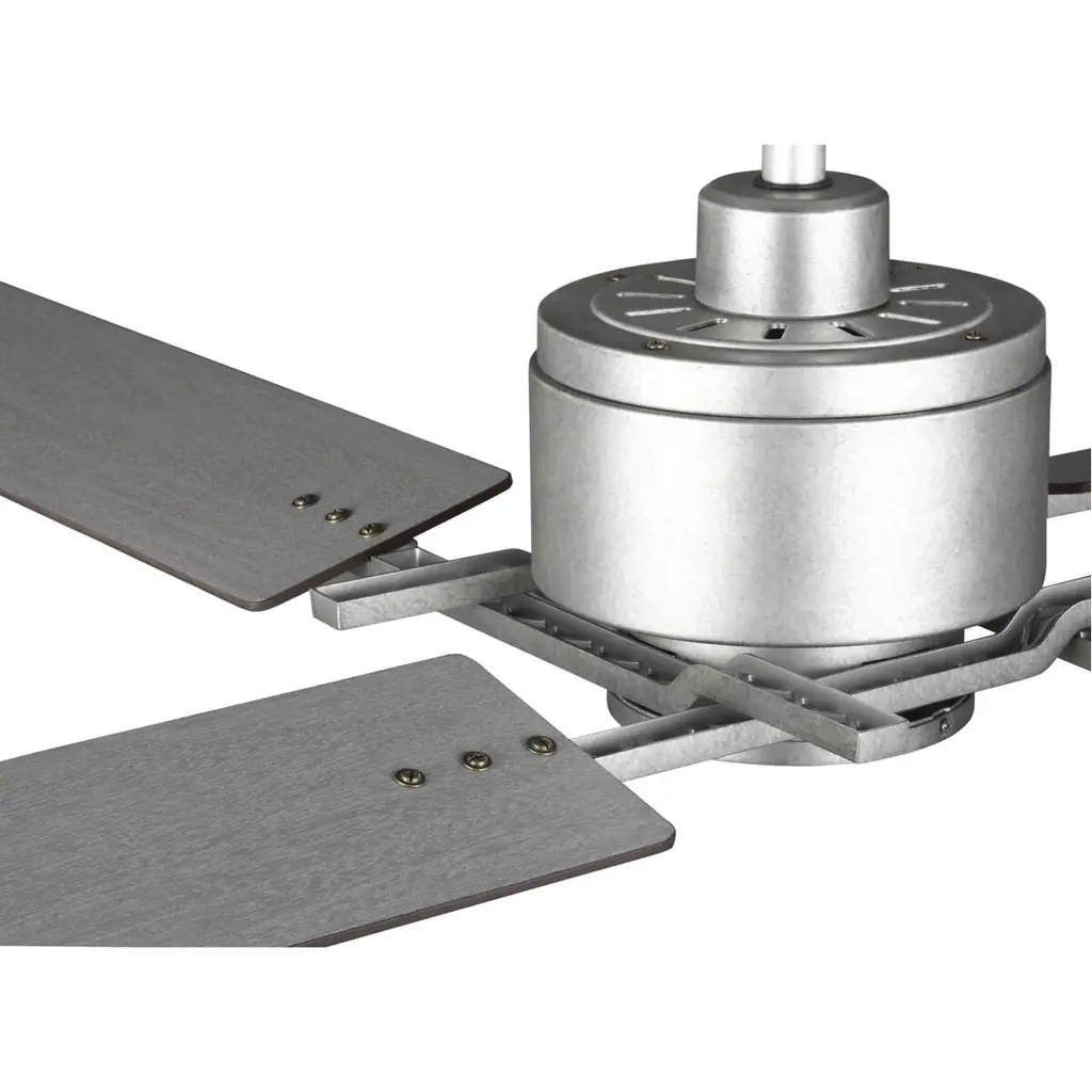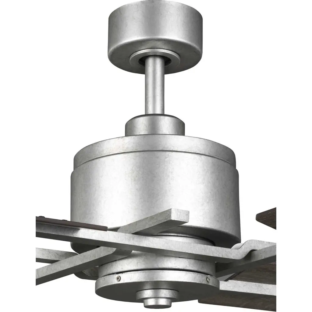 Recall charming, rustic lattice work with this farmhouse-inspired ceiling fan. Four rough hewn plywood blades take center stage in the design. With a beautiful galvanized finish, this ceiling fan is sure to help transform any living space into a cool paradise of relaxation.