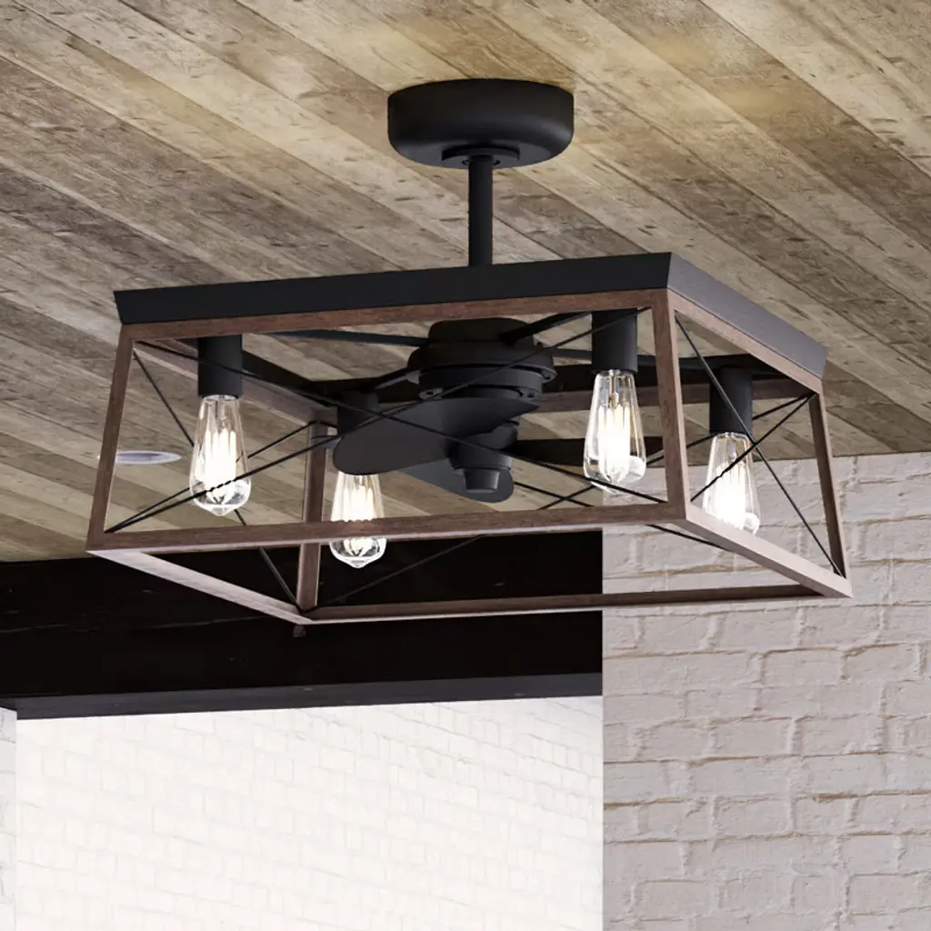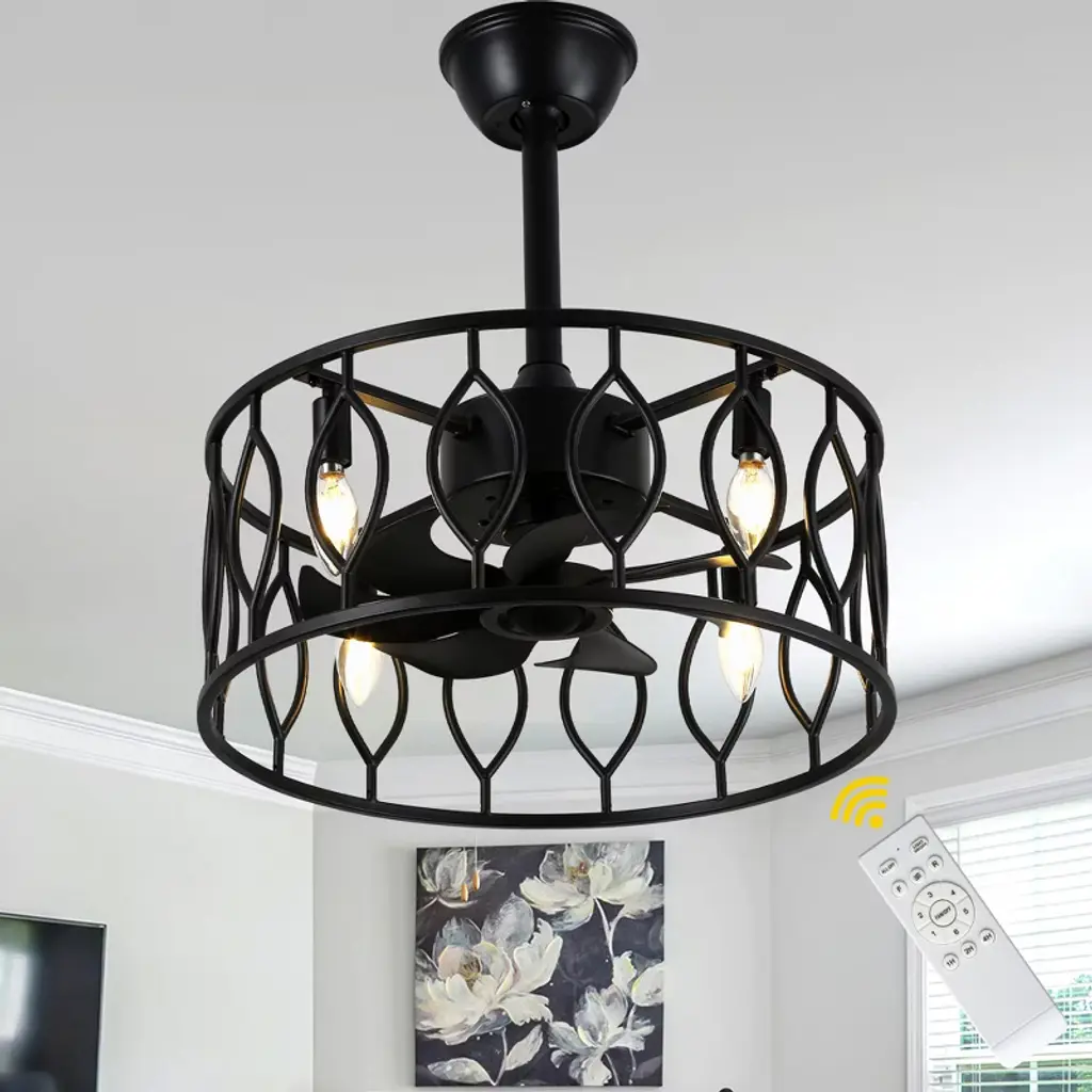 Bella Depot 19" Black Caged Ceiling Fan With Light And Remote 6-speed Reversible Fan For Bedroom Living Room