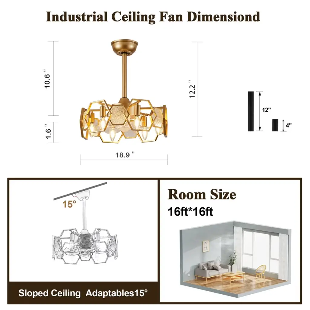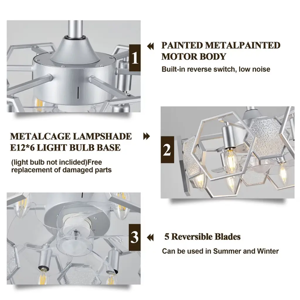 Elevate your space with the Bella Depot 19" Industrial Ceiling Fan Light, where style meets functionality! This stunning fan features seven sleek ABS blades that deliver optimal airflow while adding a touch of modern elegance to any room. With a robust metal frame and a chic glass shade, it¡¯s available in striking black and gold or silver finishes to perfectly complement your d¨¦cor. Experience customizable comfort with six speed settings and the ability to reverse the fan direction, ensuring year-round enjoyment. The built-in timer function allows you to set it and forget it, making your living space as convenient as it is stylish. With six E12 light sockets, you can easily create the perfect ambiance, all controlled effortlessly with the included remote. Installation is a breeze, so you can enjoy your new fan light in no time. Plus, with a one-year warranty, you can shop confidently knowing Bella Depot stands behind its quality. Transform your home with this eye-catching piece¡ªorder yours today!