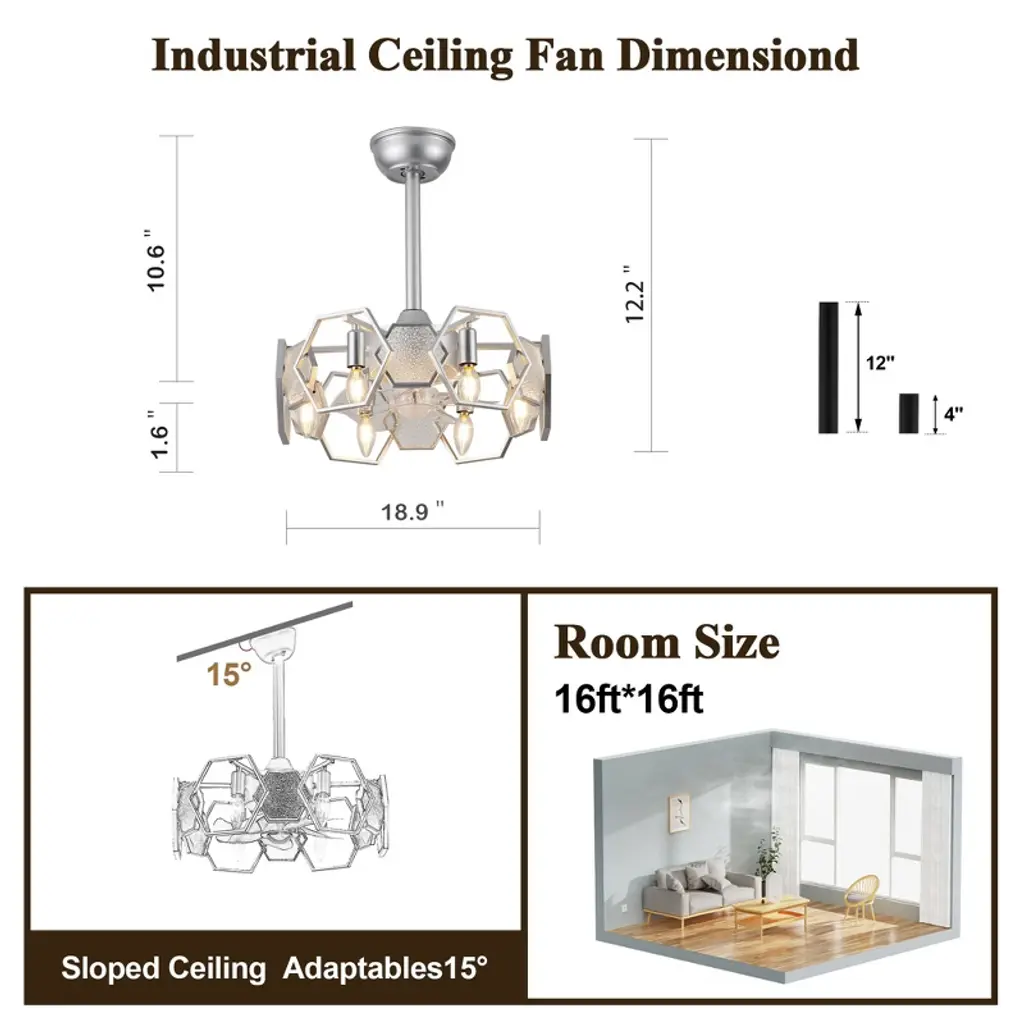 Bella Depot 19" Silver Industrial Ceiling Fan With Light And Remote