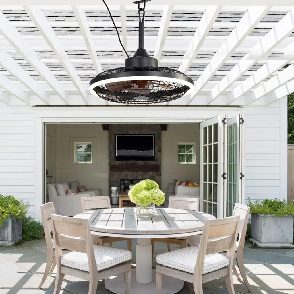 Elevate your outdoor experience with the Bella Depot 20" Black Cage Outdoor Fan Light. Its classic yet modern design features a sturdy metal cage and five rich brown blades, delivering powerful airflow while adding a stylish touch to your patio or backyard. Built with a waterproof metal shade, this fan is perfect for outdoor use, ready to withstand the elements while keeping you comfortable. With six adjustable speed settings and reversible functionality, you can enjoy refreshing breezes in the summer and circulate warm air in the winter. The integrated LED light ensures your evenings are well-lit, while the easy plug-in installation makes setup a breeze. Designed to complement a variety of decor styles, this fan light is the perfect addition to any outdoor oasis. Upgrade your space today!