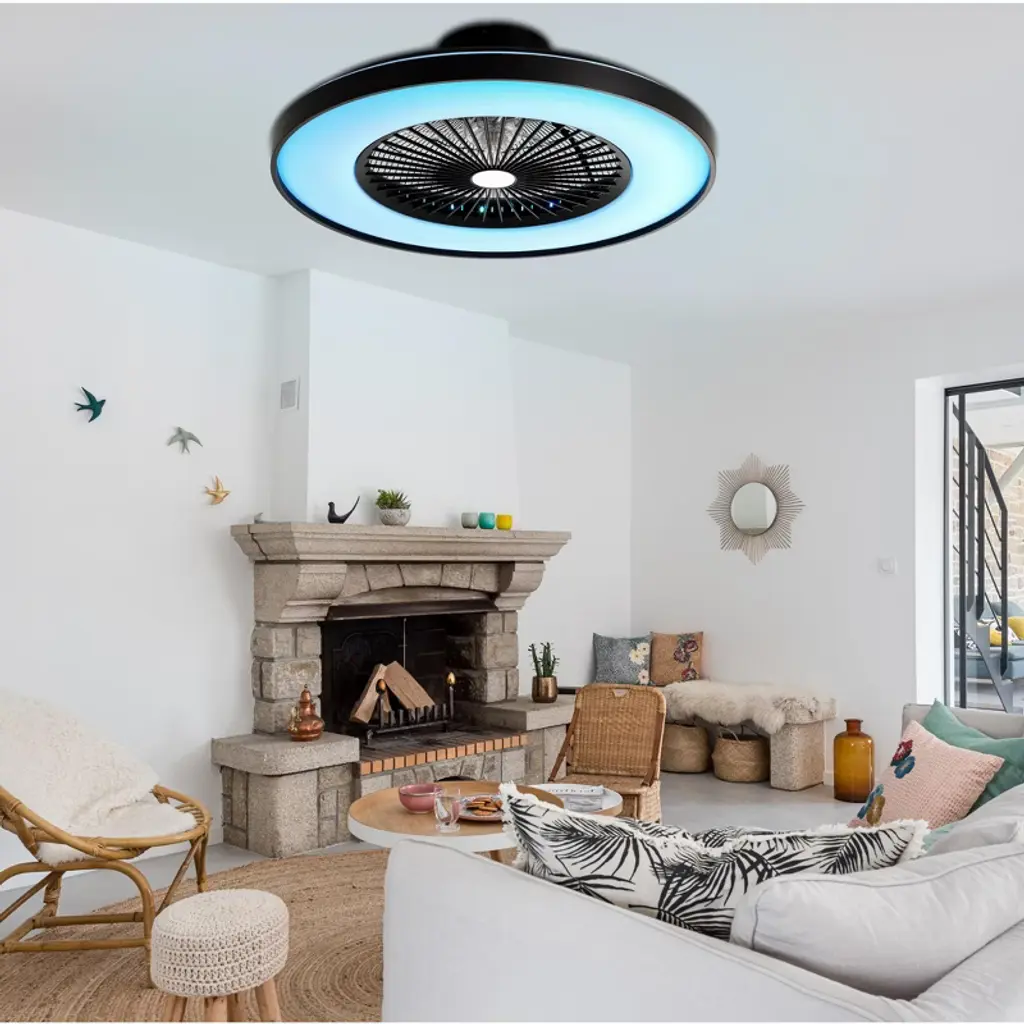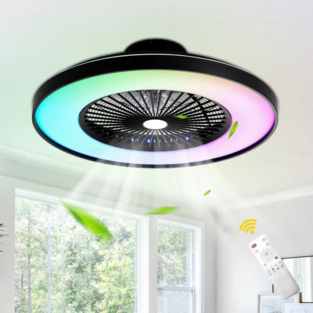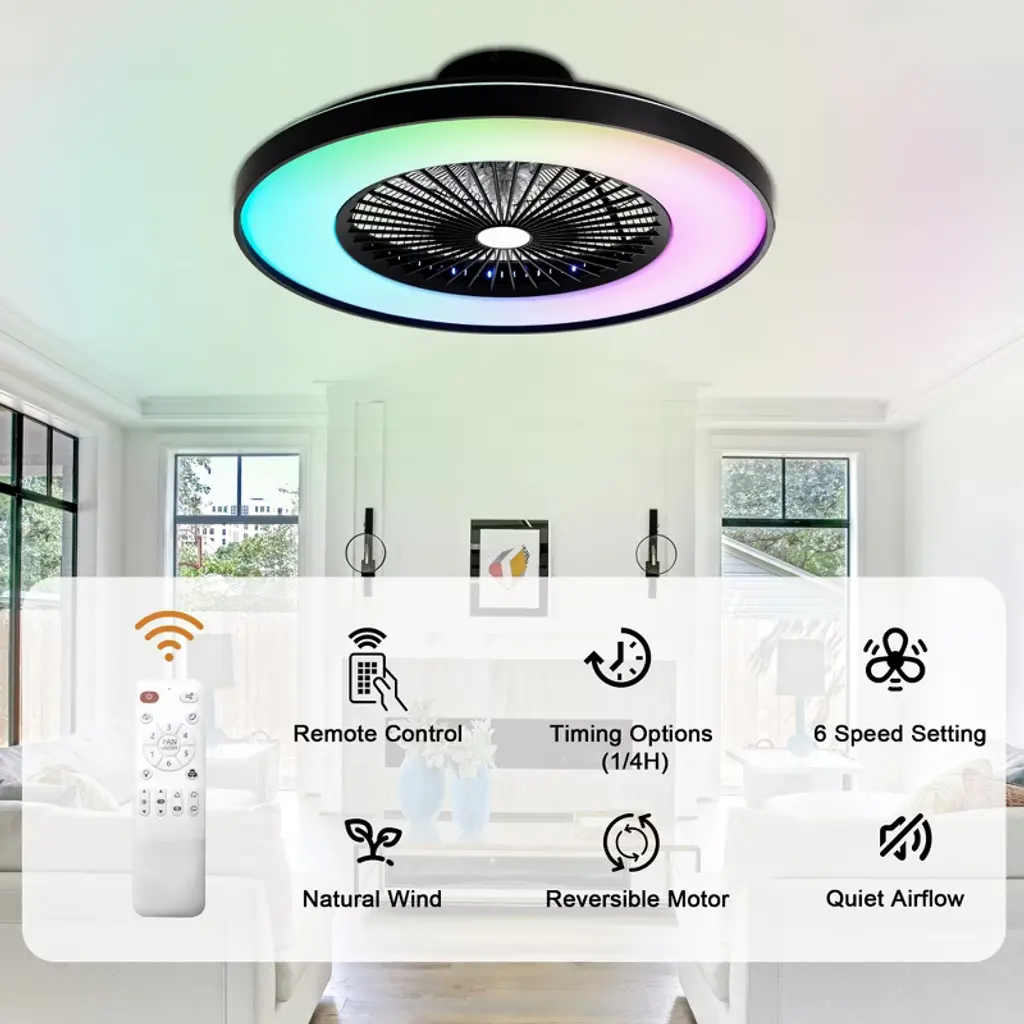 Elevate your home decor with the Bella Depot 23" Ceiling Fan, a stunning fusion of industrial and modern design. This stylish fan features seven sleek, hidden ABS blades that provide a clean, minimalist look while delivering powerful airflow. The RGB LED lights are fully adjustable, allowing you to set the perfect mood with vibrant colors and dimming options to match any occasion. With six speed settings and a reversible motor, you can enjoy customized comfort throughout the year, whether it's a warm summer day or a chilly winter evening. The convenient timer function lets you relax without worrying about turning it off. Installation is a breeze, making it easy to upgrade your space in no time. Plus, with a one-year warranty, you can shop with confidence. Don¡¯t miss out on this perfect blend of style and functionality¡ªbring home the Bella Depot Ceiling Fan today!