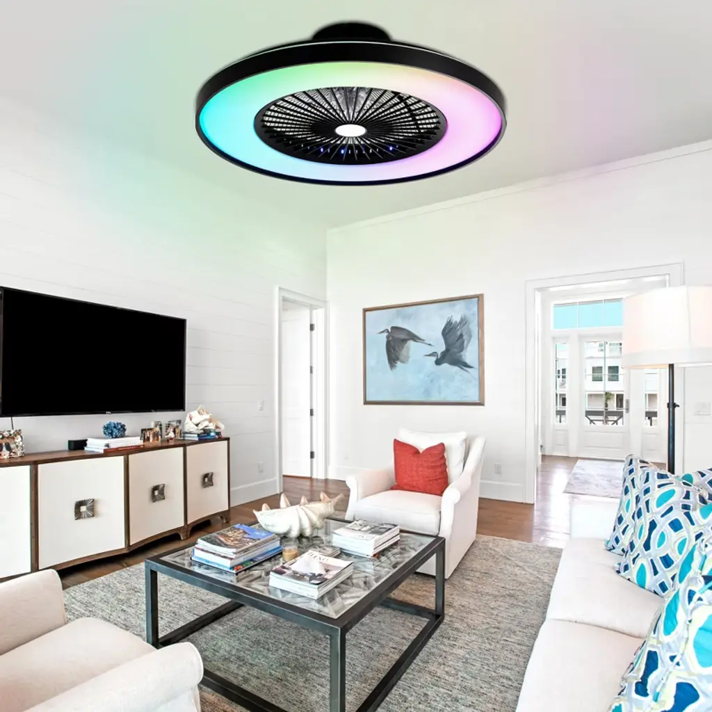 Bella Depot 23" Modern Caged Ceiling Fan With Rgb Led Light Remote And App Control