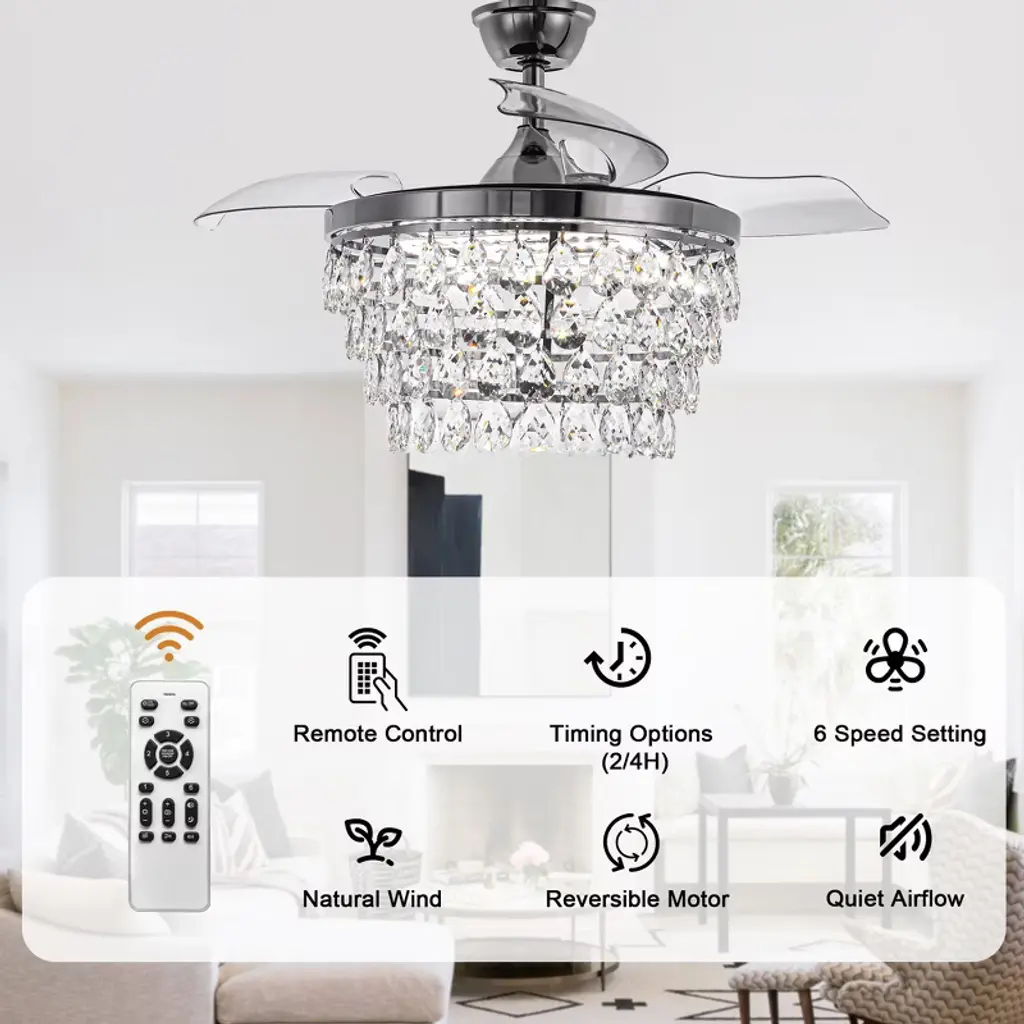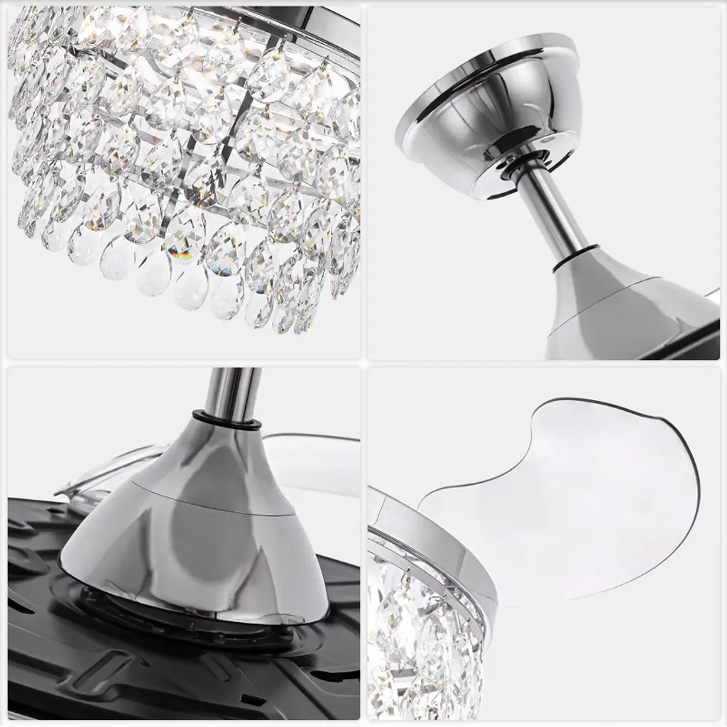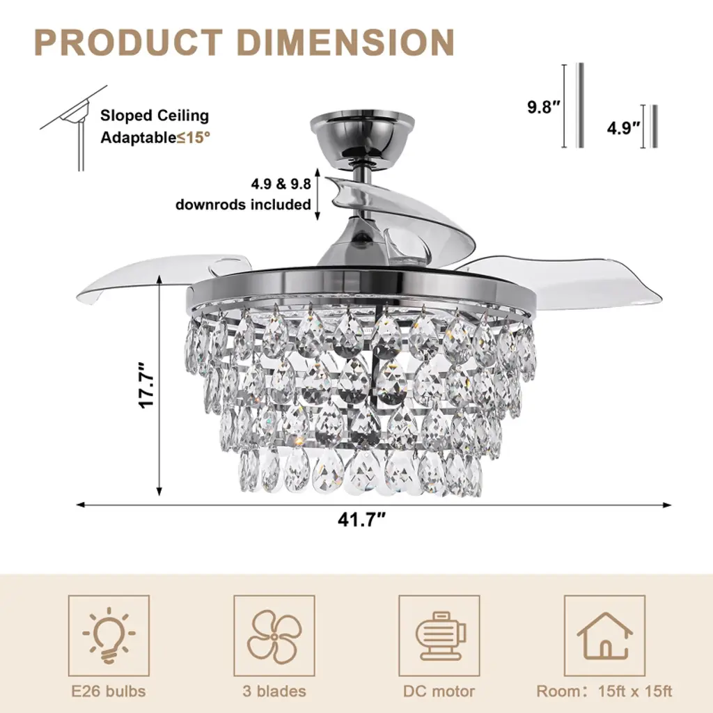 Bella Depot 42" Modern Silver Crystal Retractable Ceiling Fan