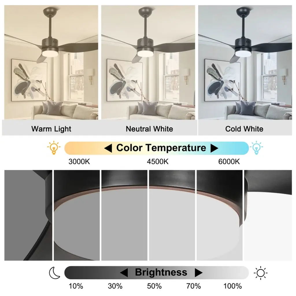 Meet the Modern 46" Ceiling Fan, a stunning addition that effortlessly elevates any room it graces. Boasting three expansive fan blades and integrated LED lighting with adjustable brightness settings, this fan seamlessly blends style and functionality. With six-speed options and a convenient reverse function, it ensures year-round comfort at your fingertips. Ideal for large spaces and adaptable to traditional, modern, or industrial decor styles, this fan effortlessly marries aesthetics with practicality, making it a standout choice for your home.