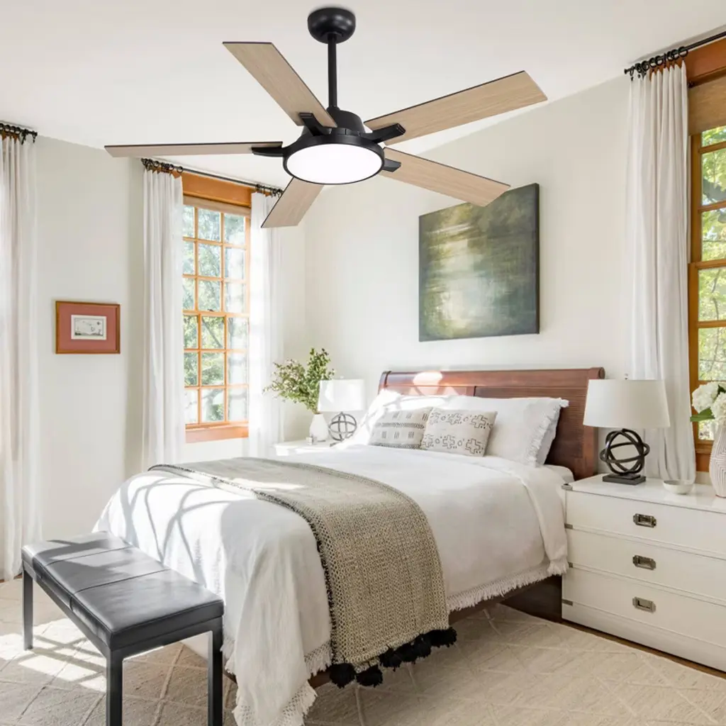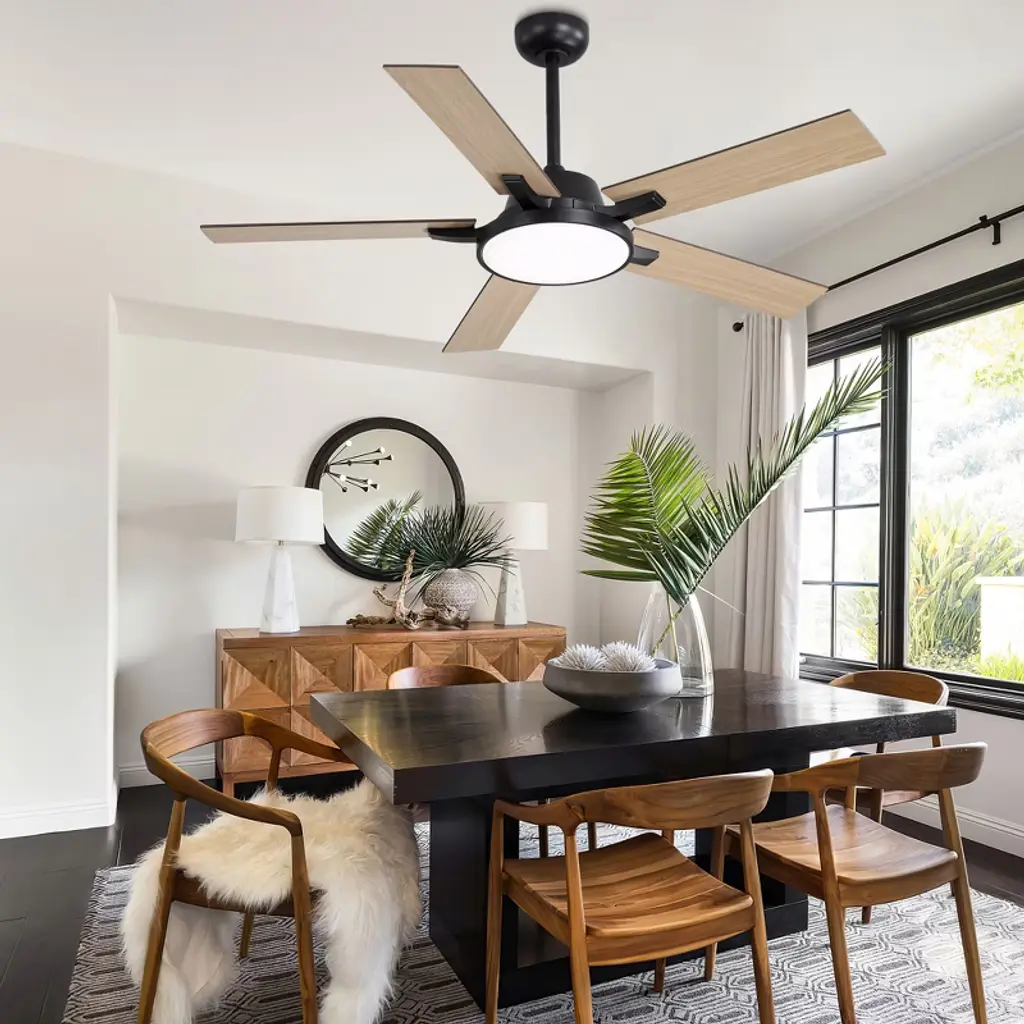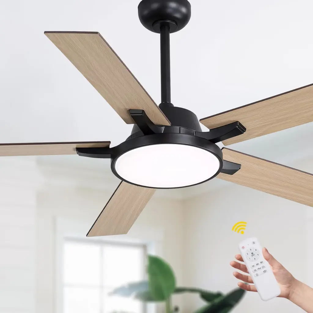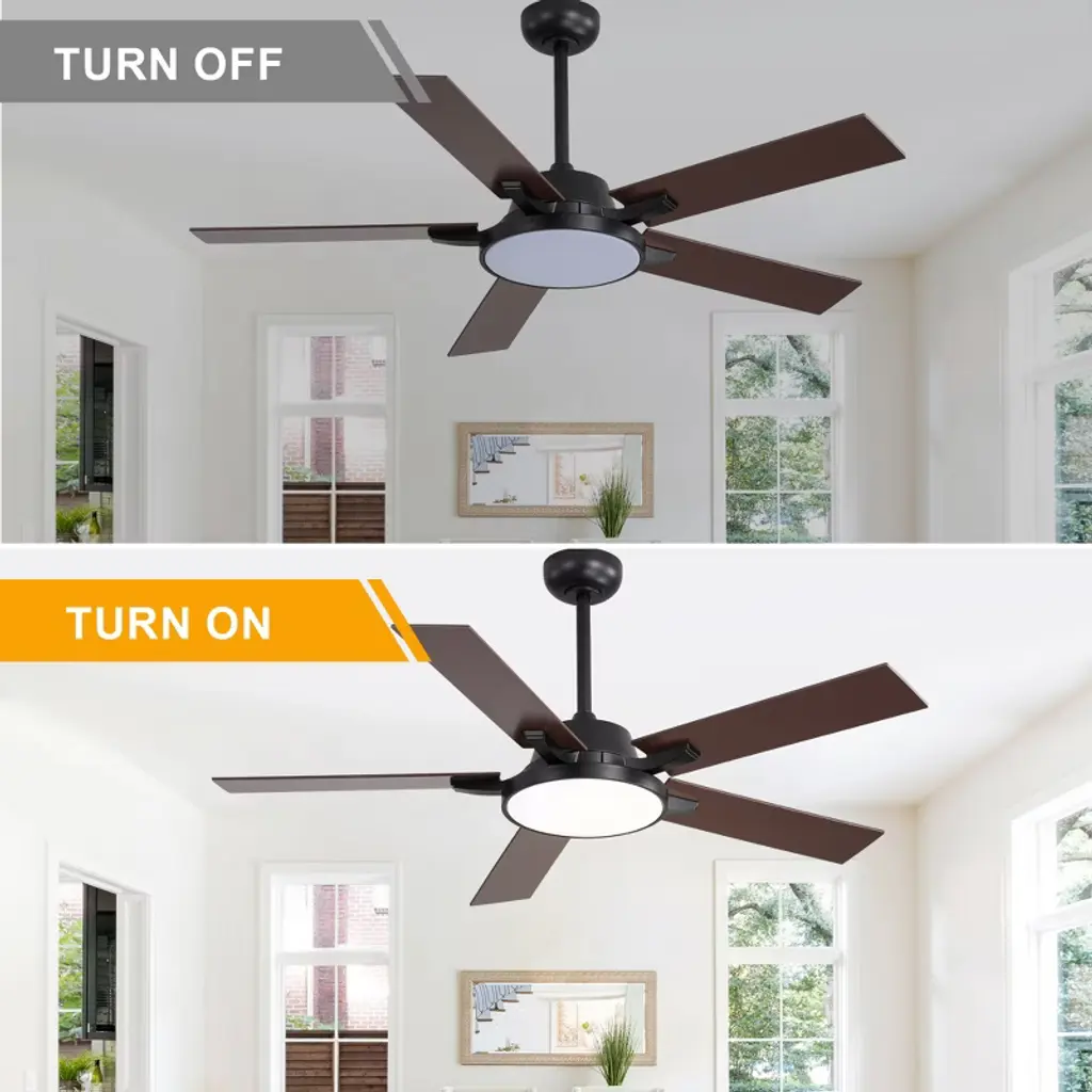 Transform your space with our sleek 52" Ceiling Fan with Light, available in modern black and white. Its minimalist design fits seamlessly in any room, while six adjustable speed settings and a reversible motor ensure year-round comfort. The integrated LED light offers customizable brightness to match your mood. Easy to install and backed by a one-year warranty, this fan is the perfect blend of style and functionality. Upgrade your home today!