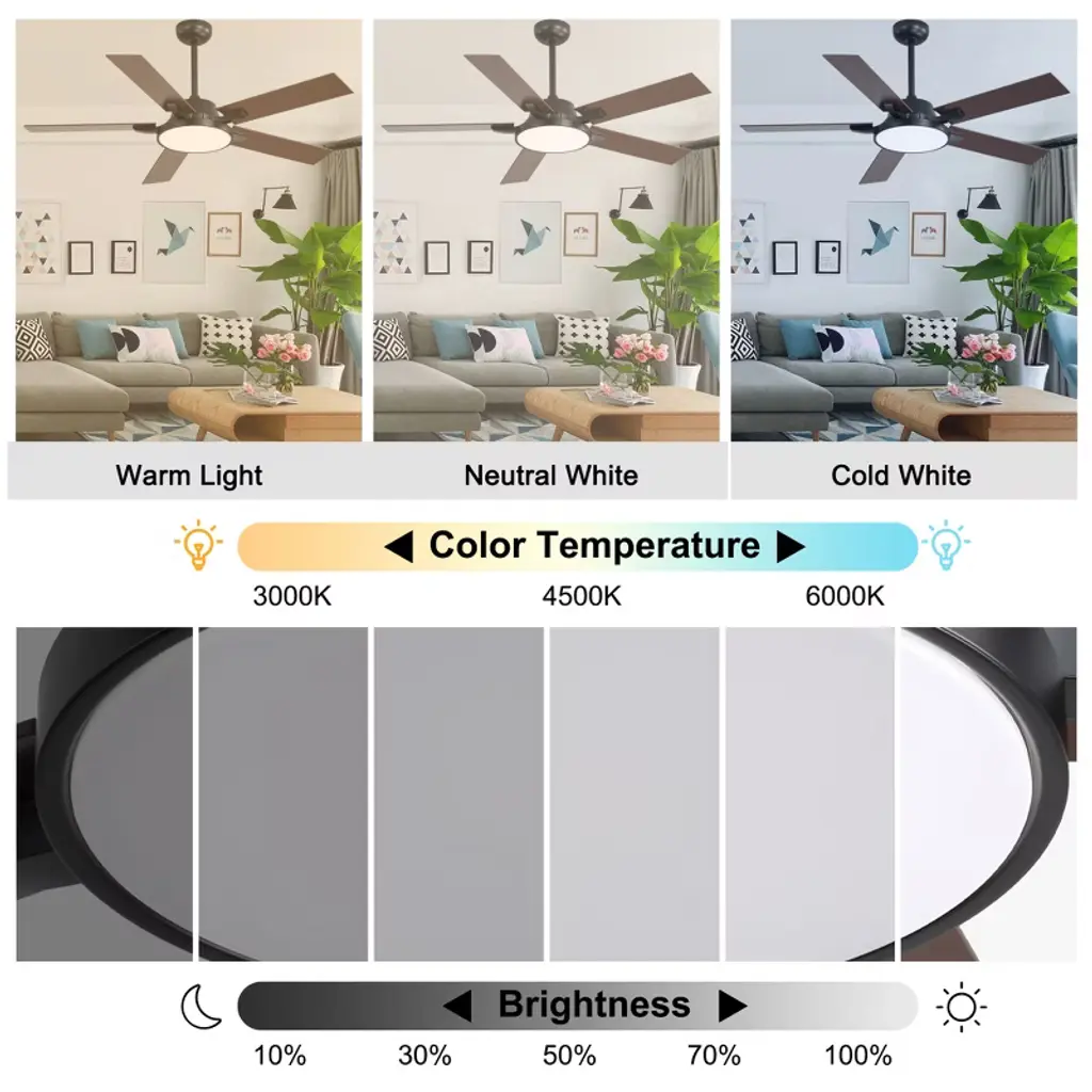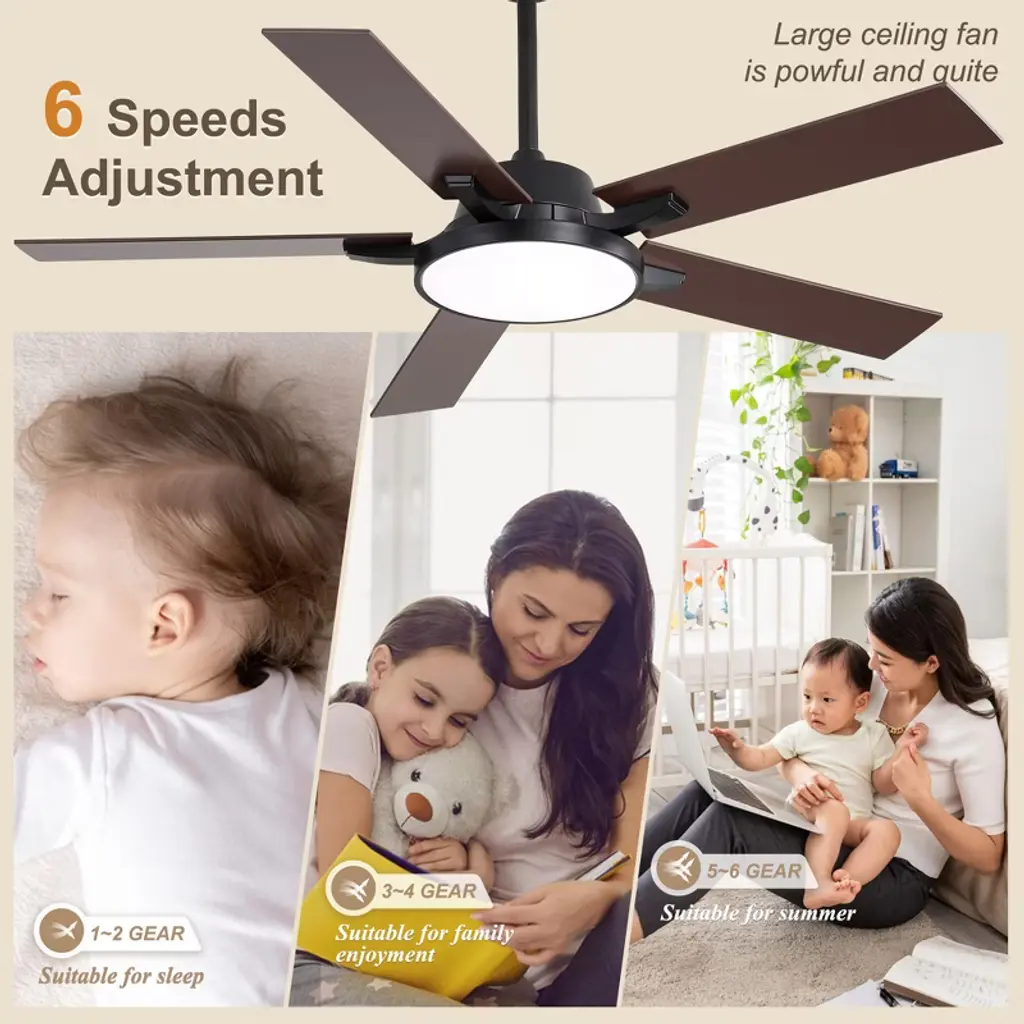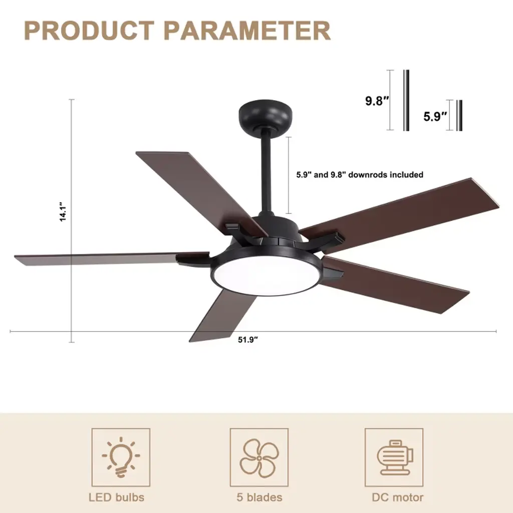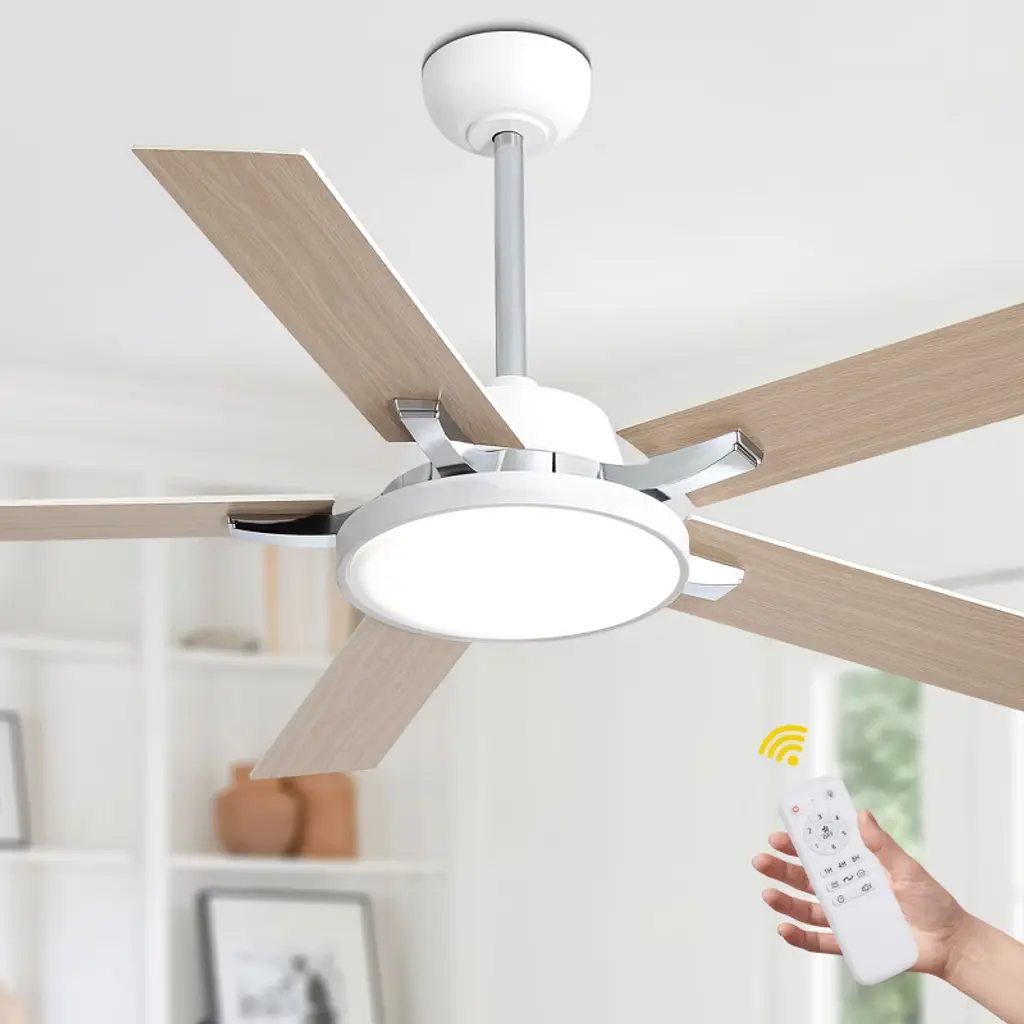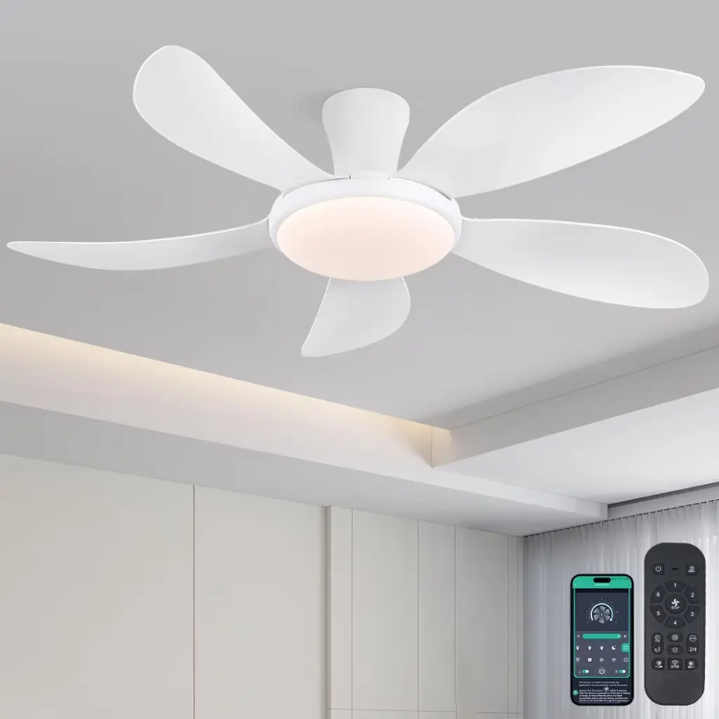Transform your space with our sleek 52" Ceiling Fan with Light, available in modern black and white. Its minimalist design fits seamlessly in any room, while six adjustable speed settings and a reversible motor ensure year-round comfort. The integrated LED light offers customizable brightness to match your mood. Easy to install and backed by a one-year warranty, this fan is the perfect blend of style and functionality. Upgrade your home today!