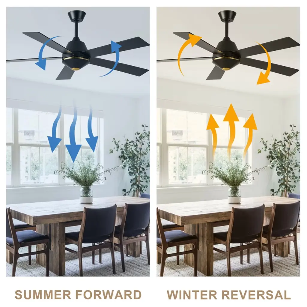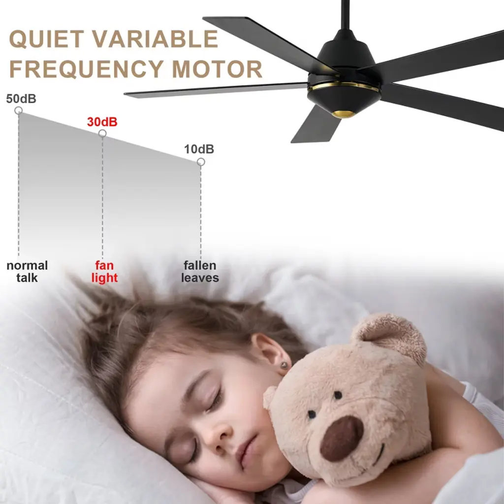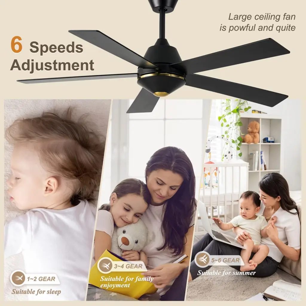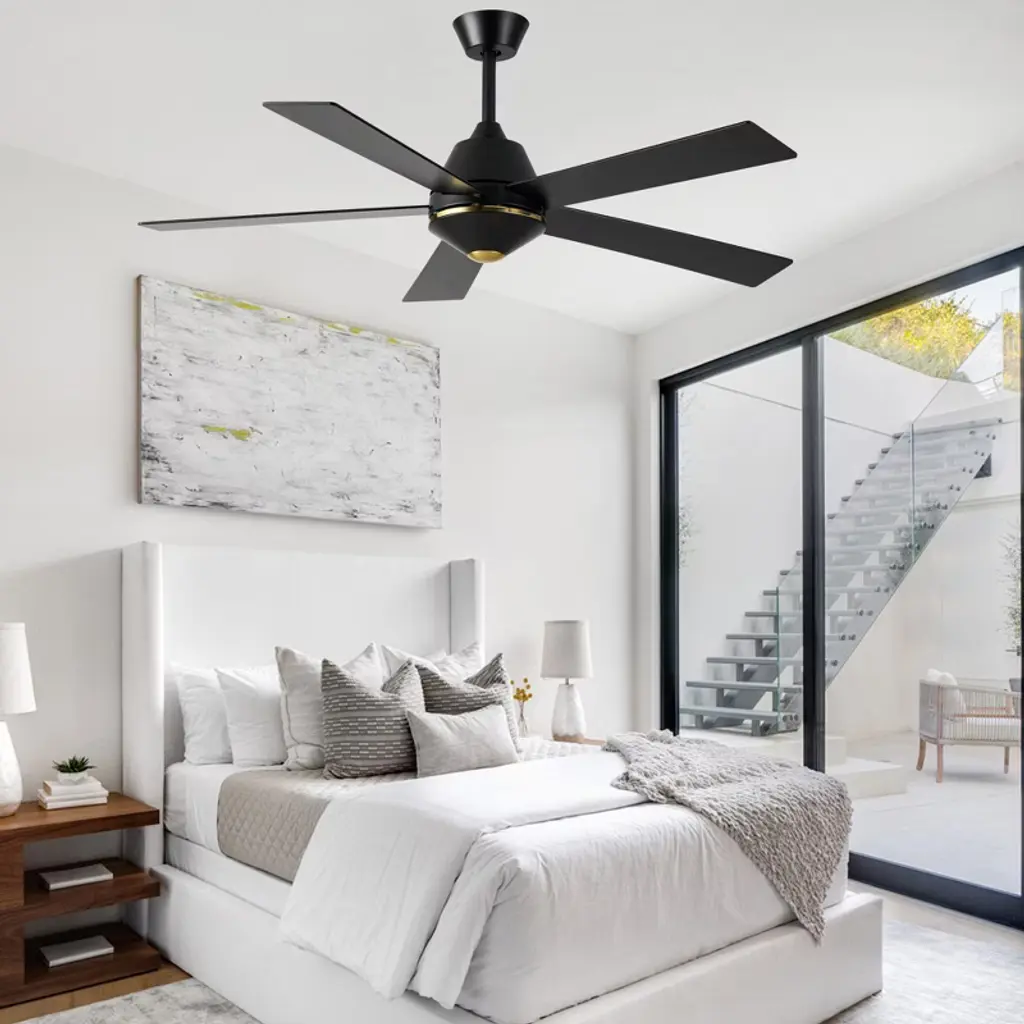 Upgrade your home with the Bella Depot 52" Modern Ceiling Fan with Light, a perfect blend of style and functionality! Featuring five elegant wooden blades and a sturdy metal frame, this fan is available in chic black or luxurious gold to suit your d¨¦cor. With six adjustable speed settings and a reversible motor, you can enjoy customized comfort all year round. Easy to install and designed to complement a variety of interior styles, this ceiling fan is a must-have for anyone looking to enhance their living environment. Transform your home with Bella Depot today!