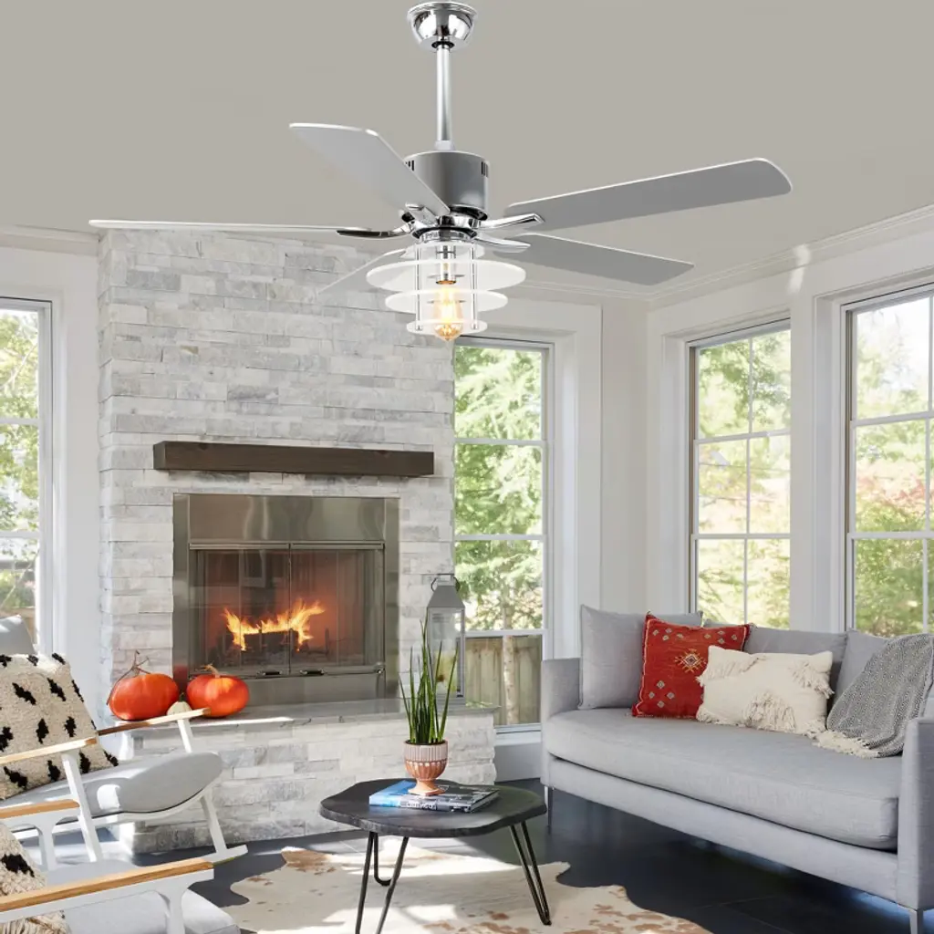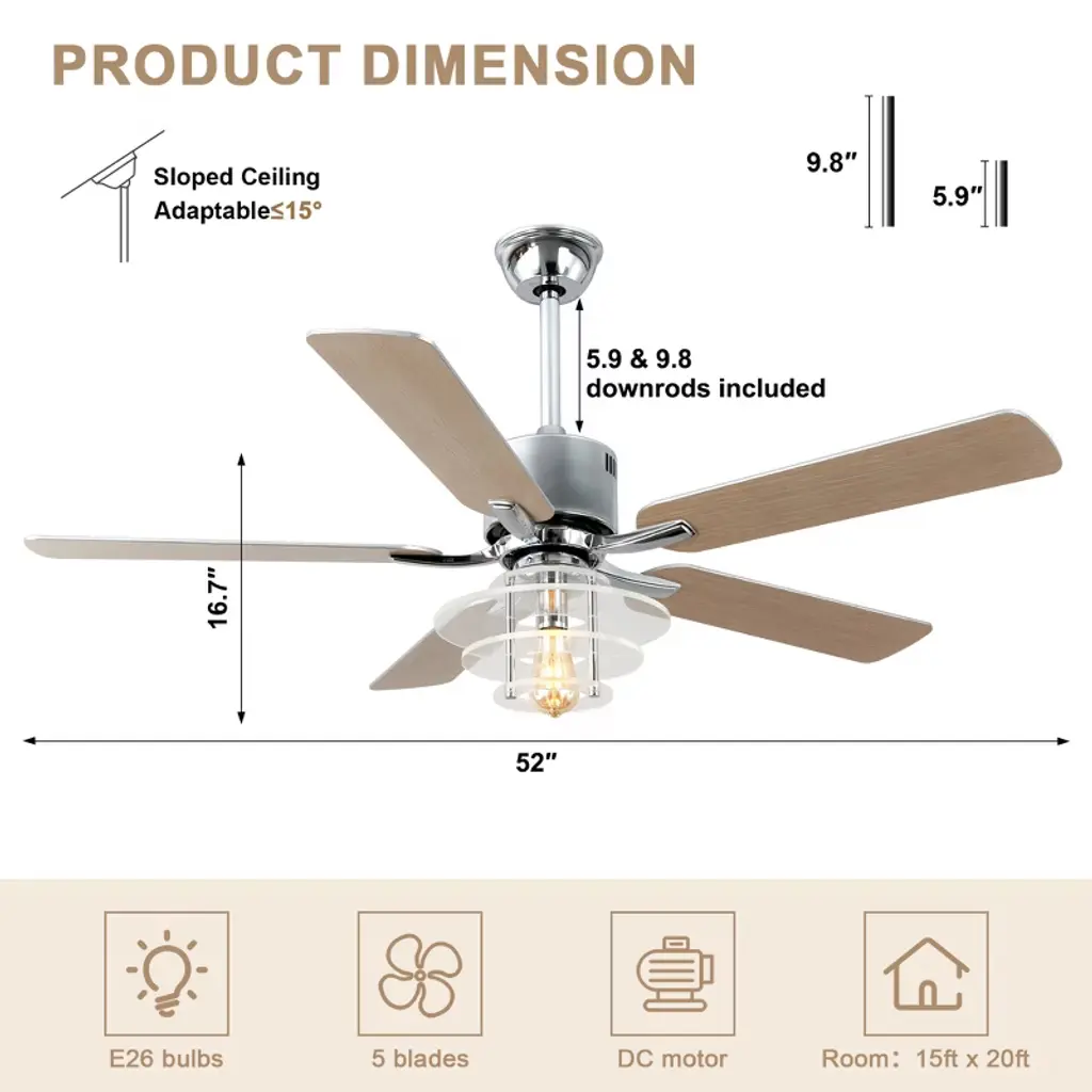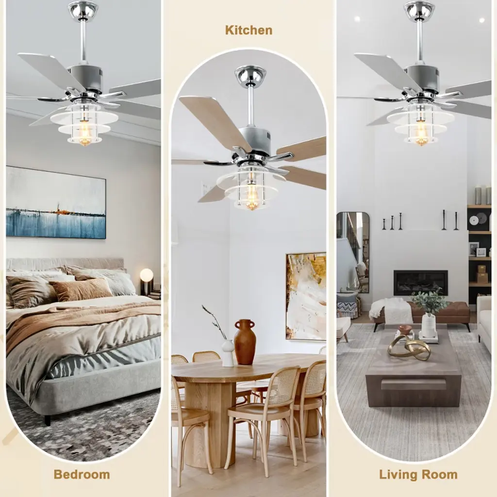 Bella Depot 52" Modern Ceiling Fan With Light Kit And Remote Glass Cage Ceiling Fan