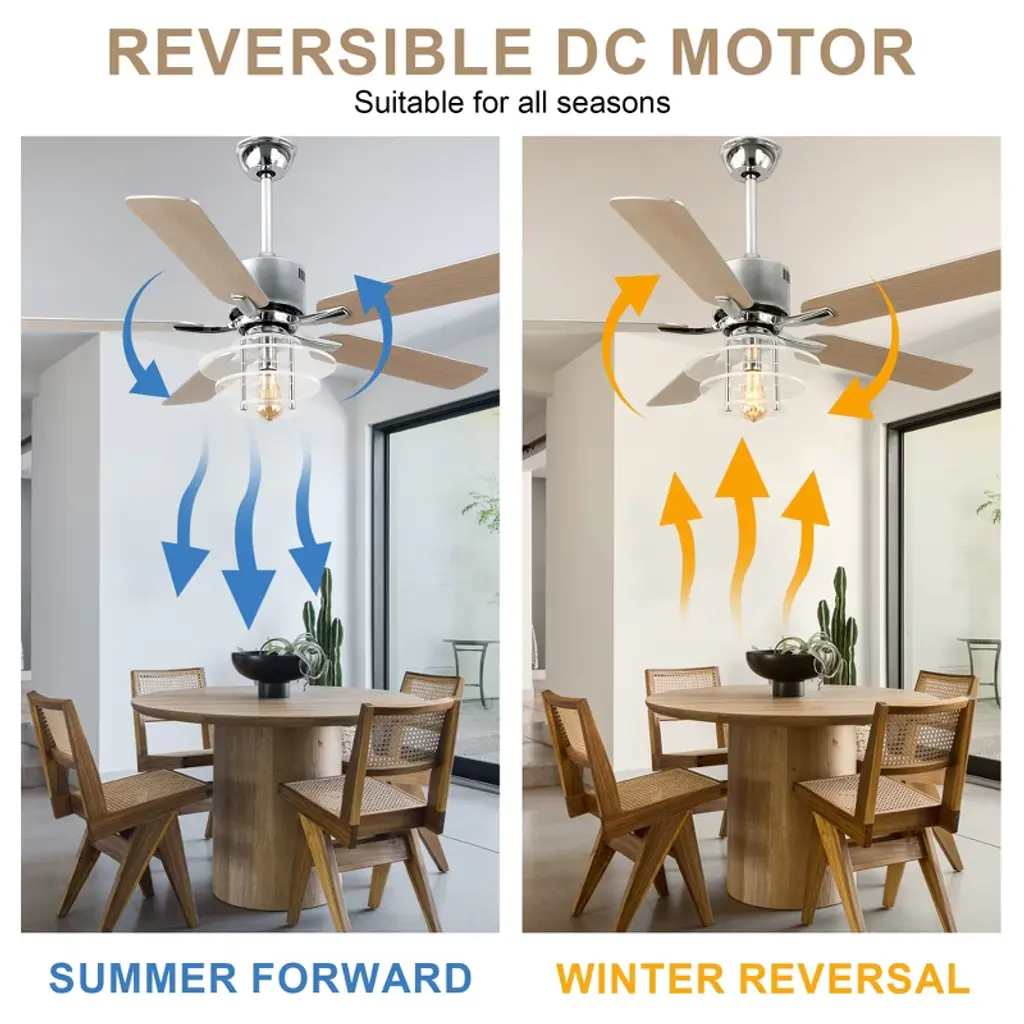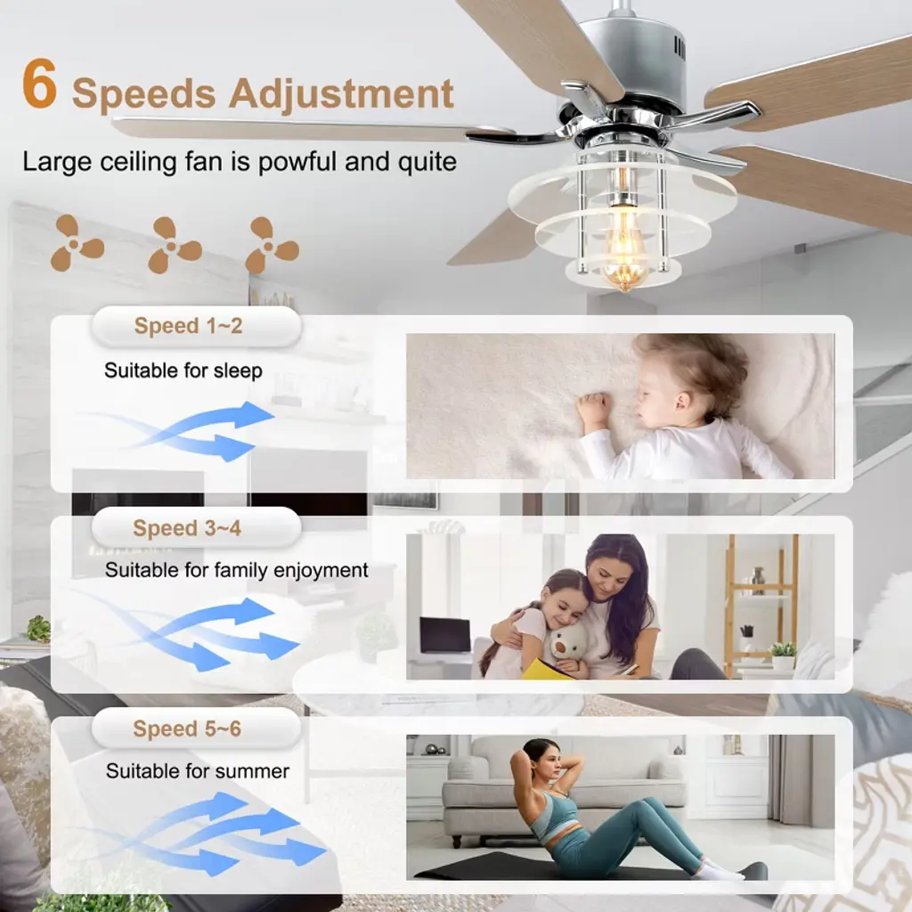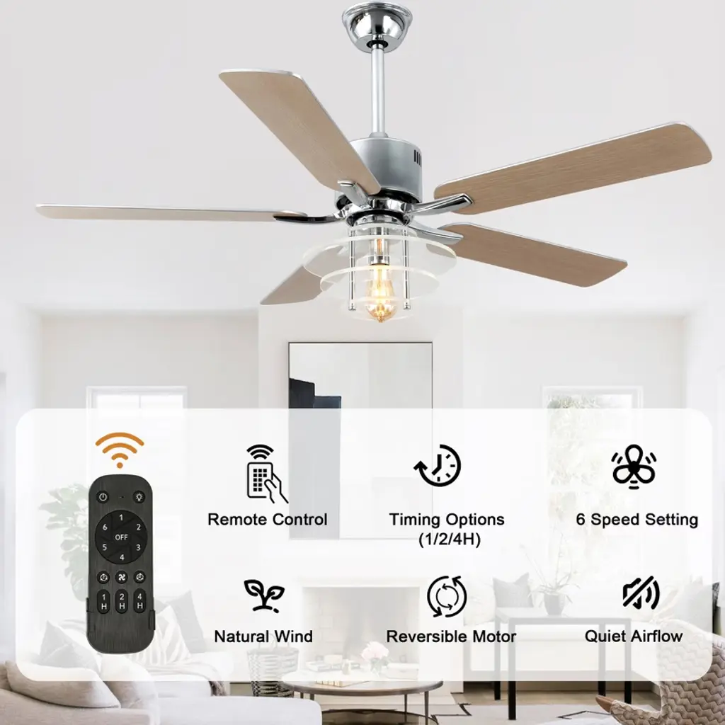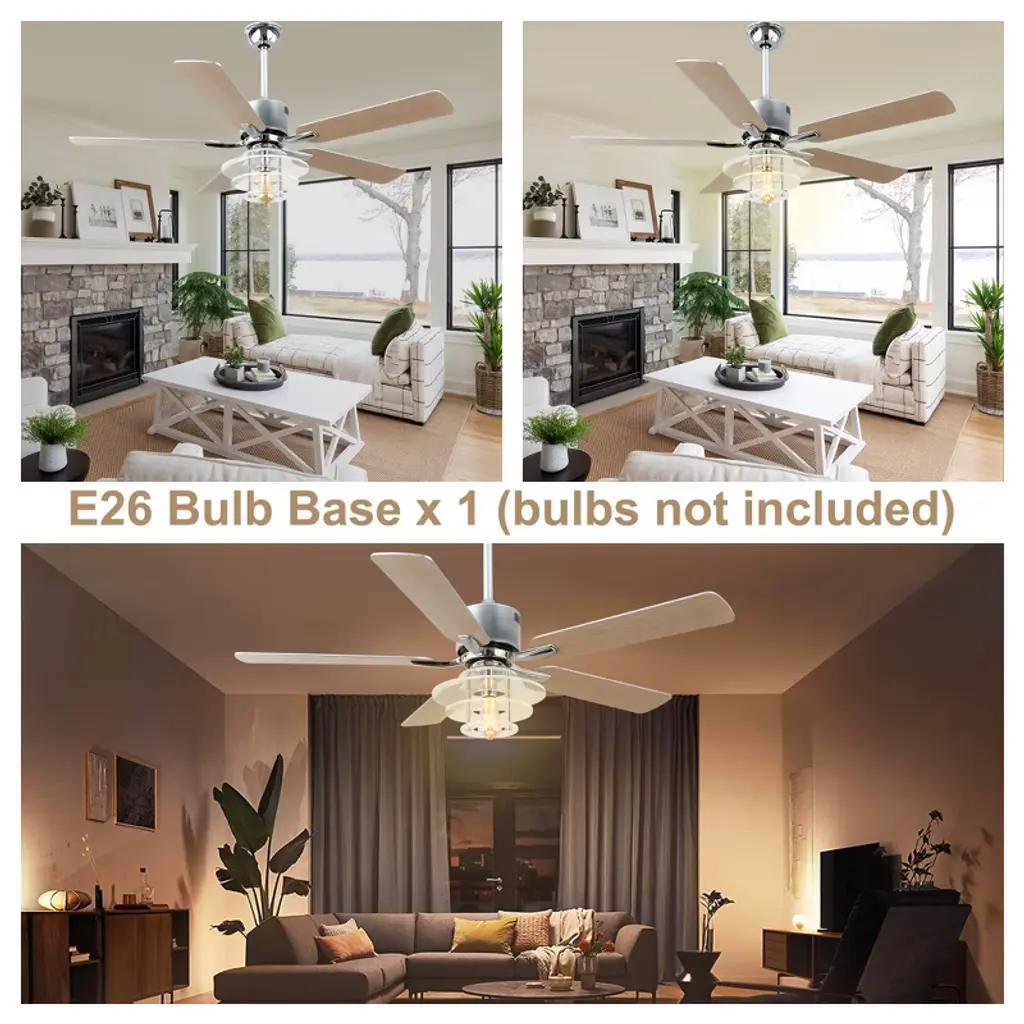 Bella Depot 52" Modern Ceiling Fan With Light Kit And Remote Glass Cage Ceiling Fan