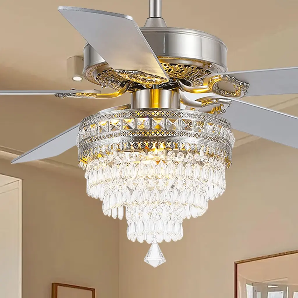 Meet the Modern 65" Large Crysatal Ceiling Fan, a stunning addition that effortlessly elevates any room it graces. With six speed options and a convenient reverse function, it ensures year-round comfort at your fingertips. Complete with three suspension rods of varying lengths, this fan offers versatile installation heights to suit your unique room dimensions. Ideal for large spaces and adaptable to traditional, modern, or industrial decor styles, this fan effortlessly marries aesthetics with practicality, making it a standout choice for your home.