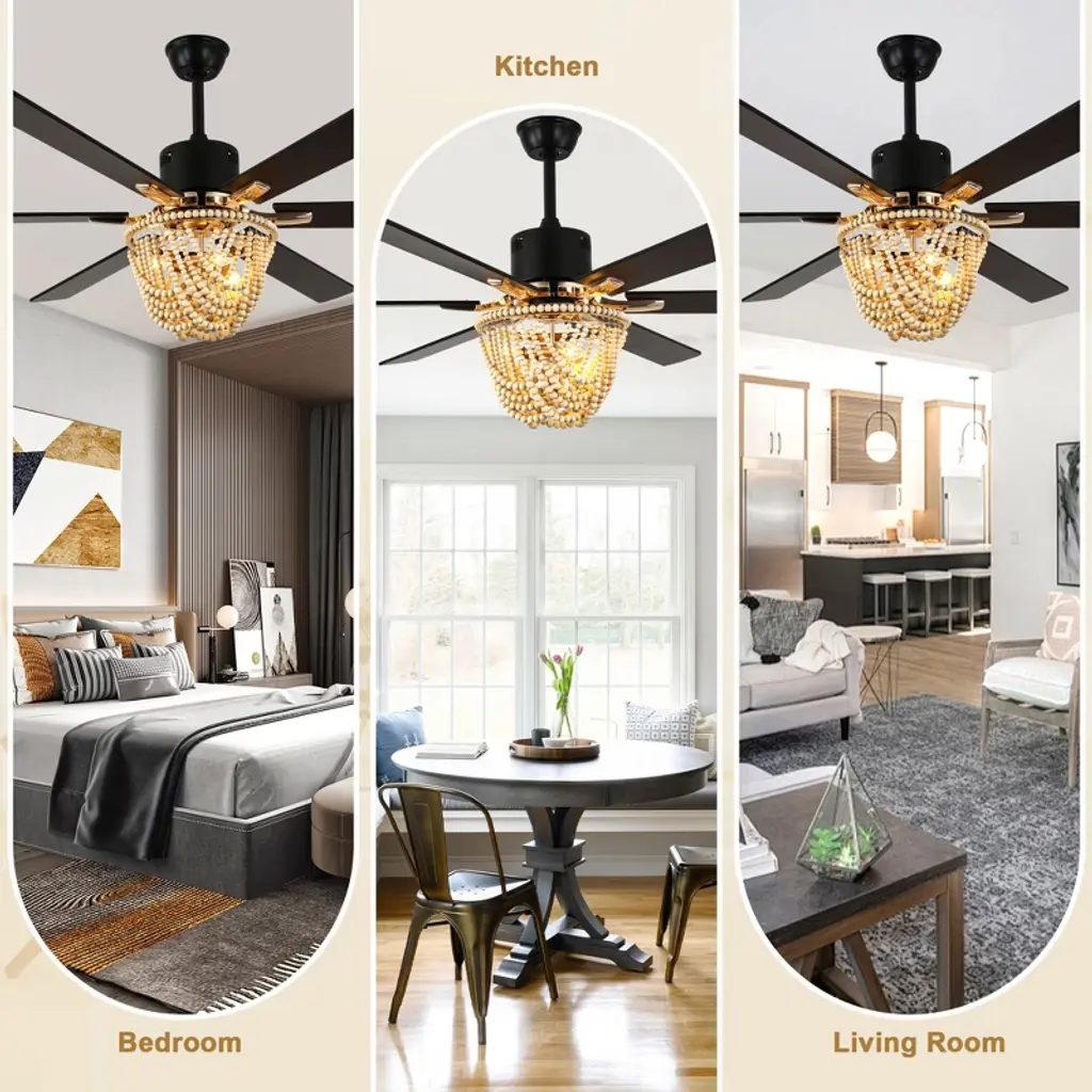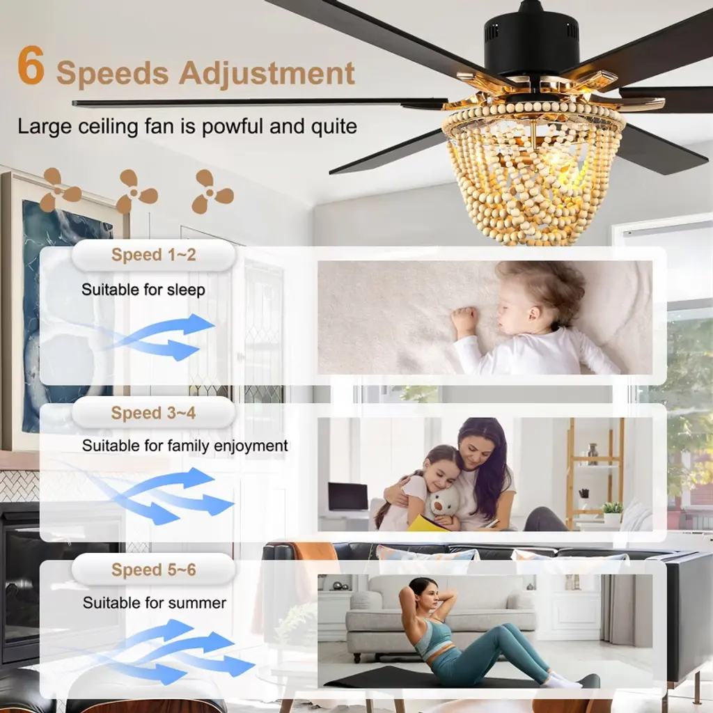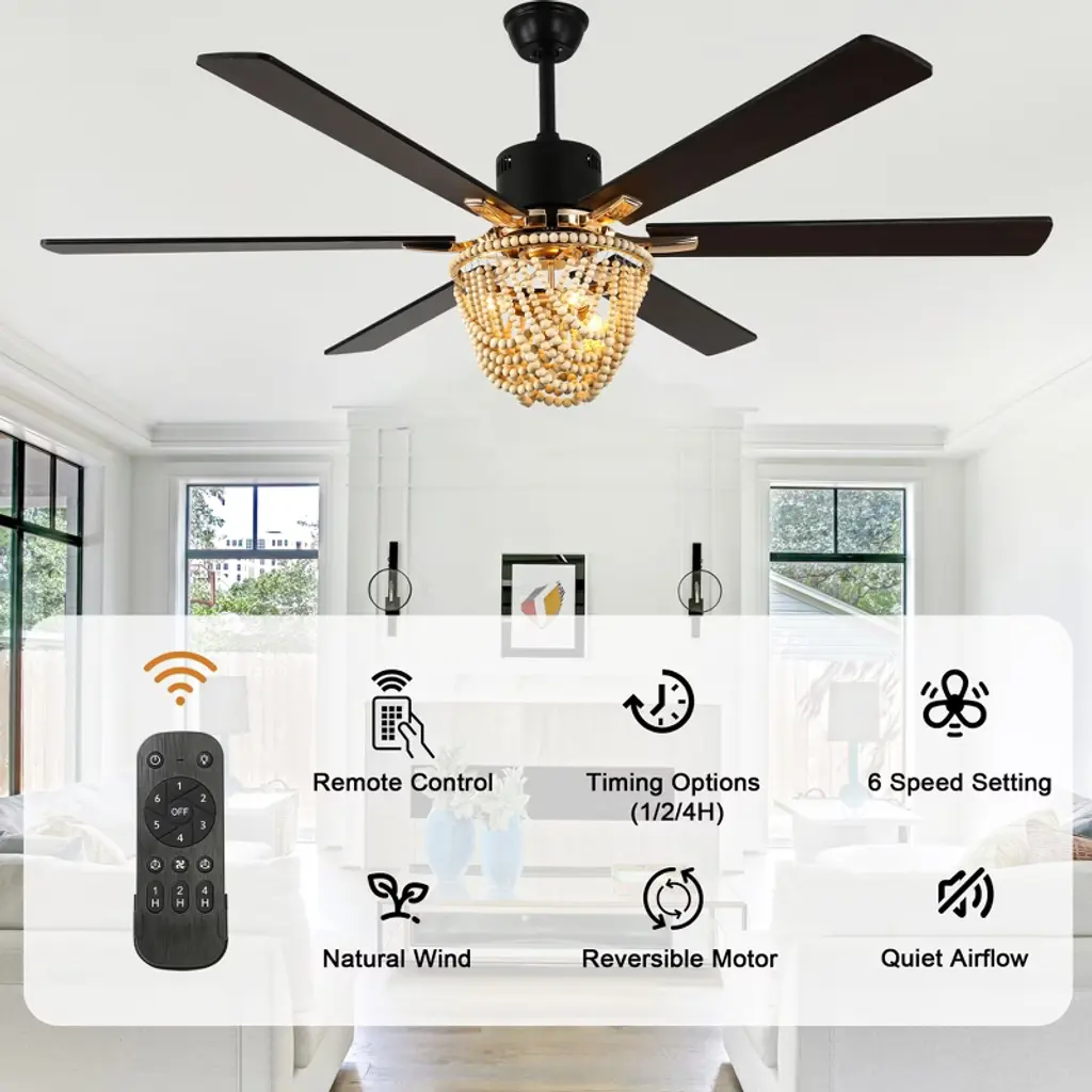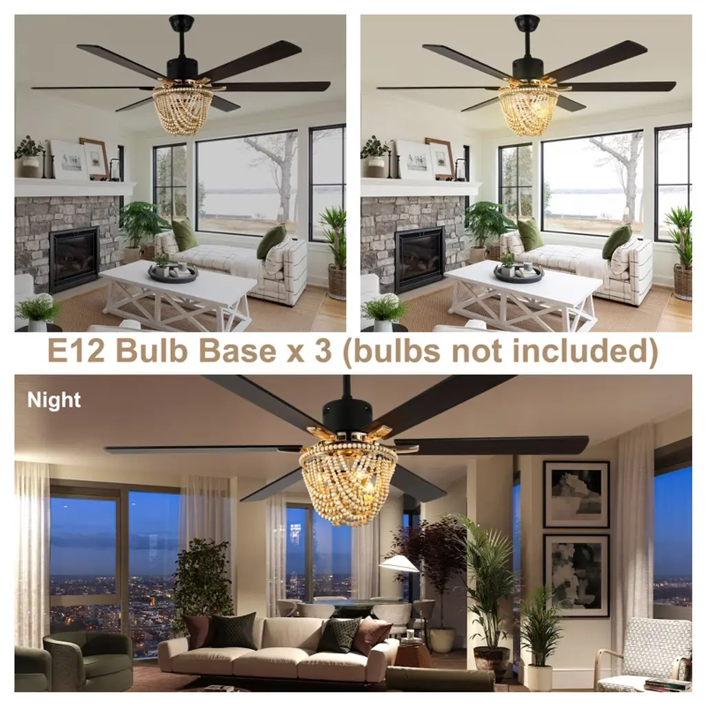 Transform your living space with the Bella Depot 65" Black Bohemian Ceiling Fan, a perfect blend of classic elegance and modern convenience. This stunning fan features a sleek design that fits seamlessly into any decor style. With six adjustable speed settings and reversible rotation, it offers year-round comfort, whether you need a cool breeze in the summer or gentle warmth in the winter. Easily install up to three E12 bulbs (not included) to create the perfect ambiance for any occasion. Enjoy quiet operation at just 50dB, even on the highest setting, and take advantage of the handy timer function for effortless use. Installation is a breeze, making it an ideal choice for any home. Elevate your space with Bella Depot and experience style and functionality like never before!