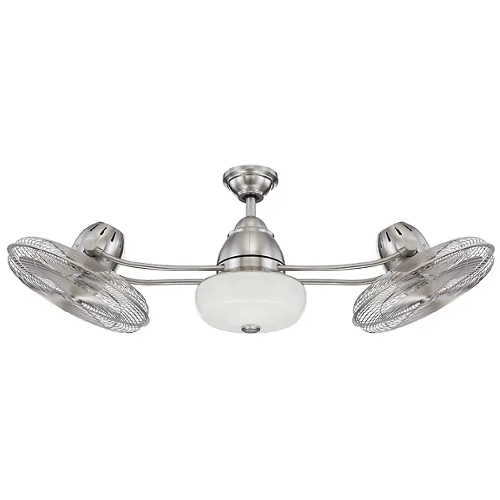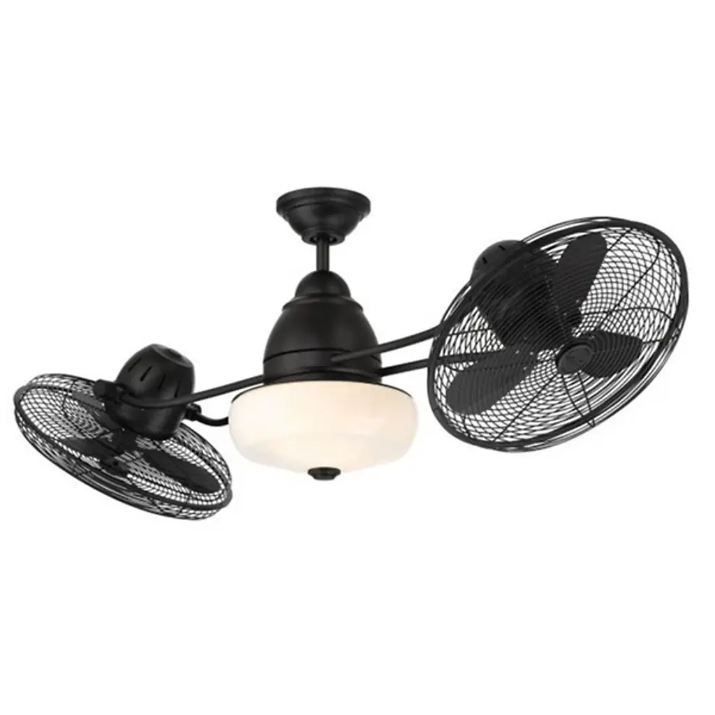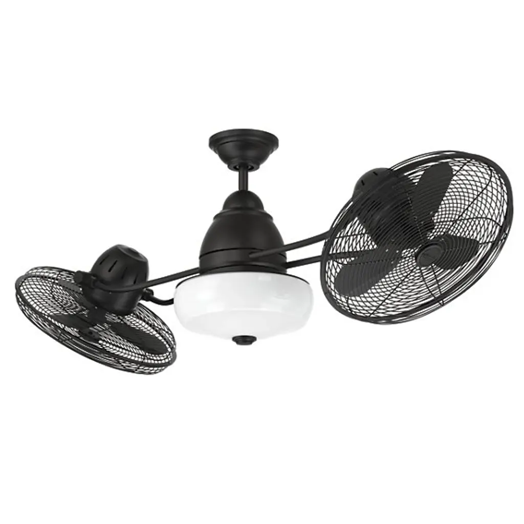 The only thing better than one powerful, compact fan is two. The Craftmade Bellows II Outdoor Ceiling Fan features a pair of fan heads that can pivot up to 80 degrees vertically while rotating 360 degrees around the central body. It's a turn of the century take on a cool idea. Included remote and wall controls (and removable light kit) make for a universally welcome package.