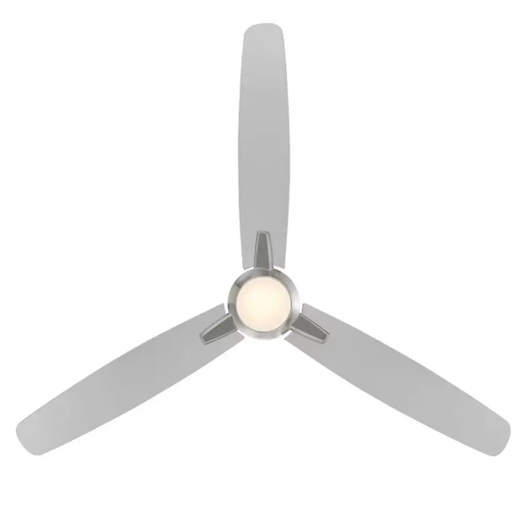 A sleek demonstration of modern lighting design, the Blitzen LED Smart Ceiling Fan from WAC Lighting adds a comforting layer of light and air circulation to the heart of your home. Extending down from the ceiling, this piece is made of smooth metal throughout and features a set of three flat blades that efficiently cut through the air. The shade underneath the piece contains an integrated LED that emits a bright and even layer of light while the blades cool the room year-round.