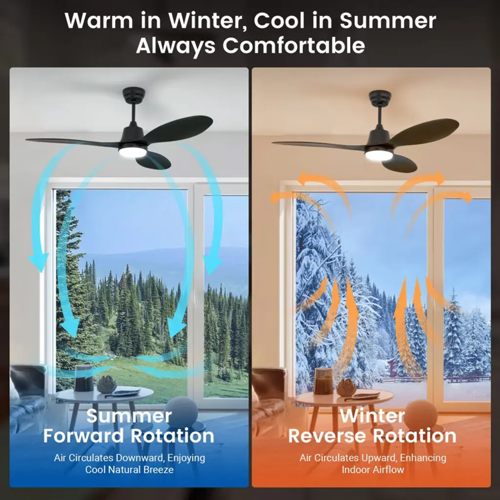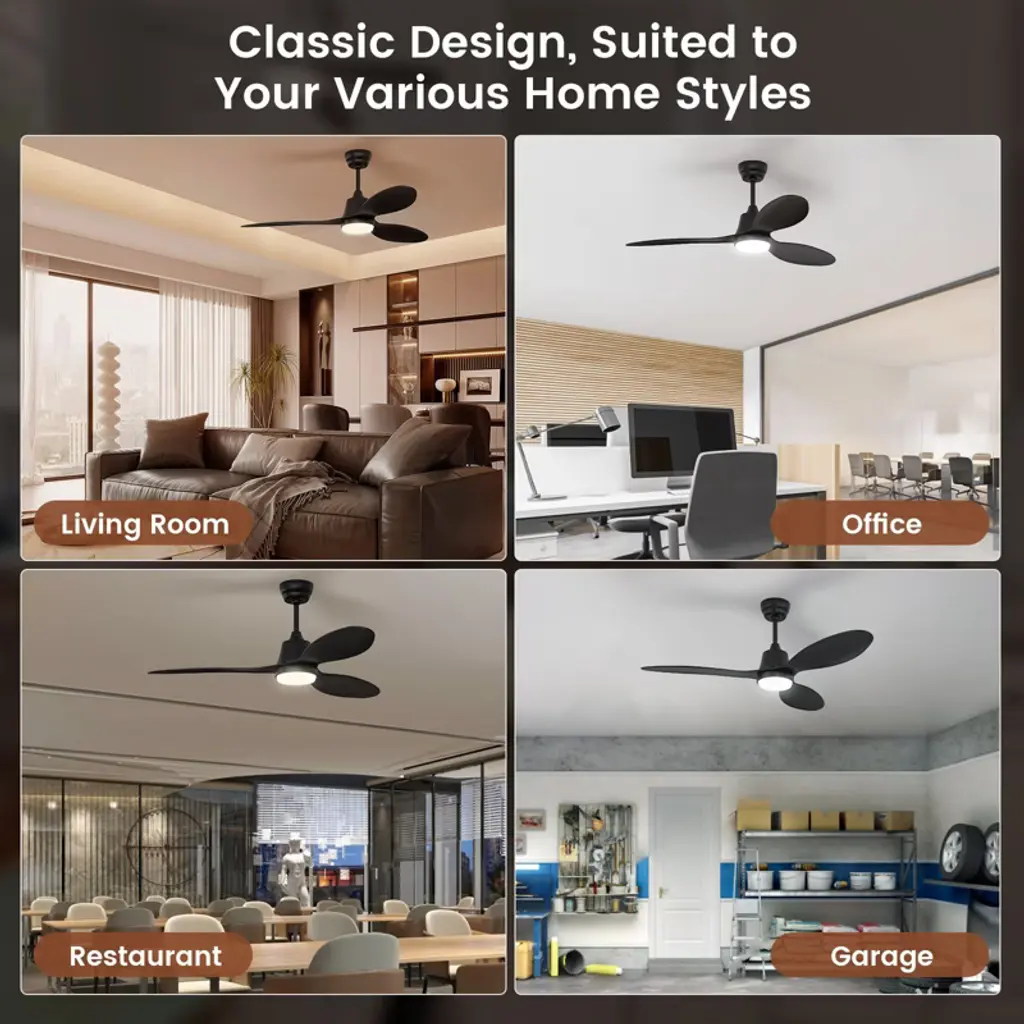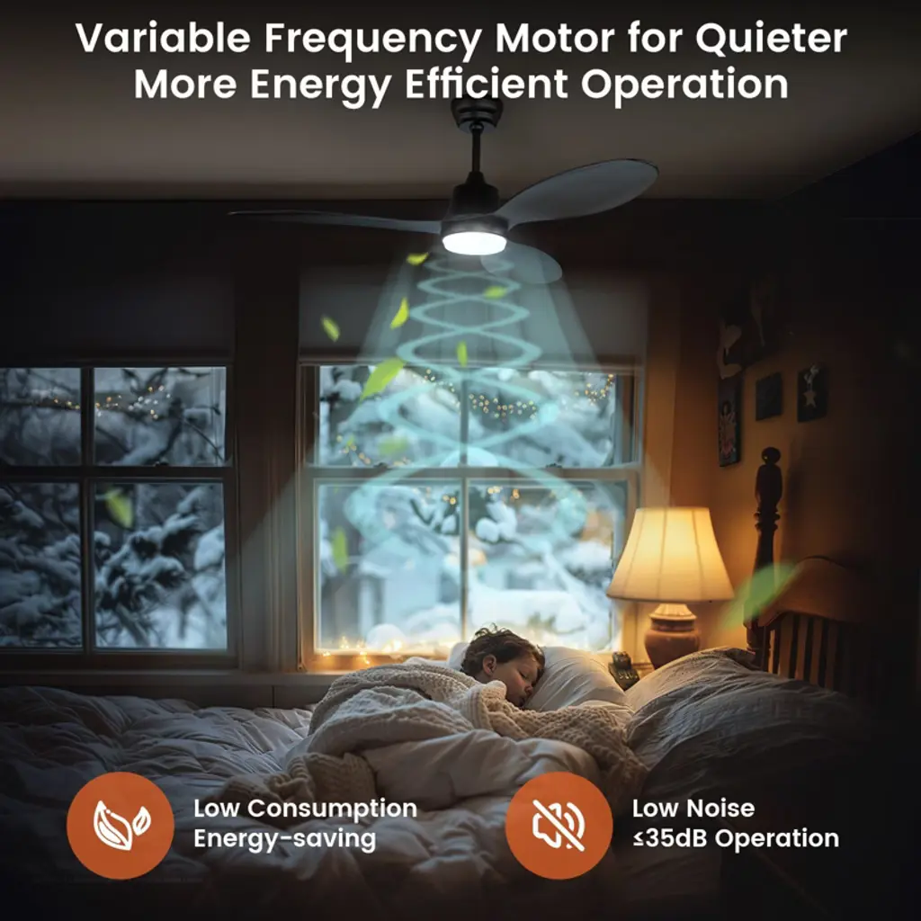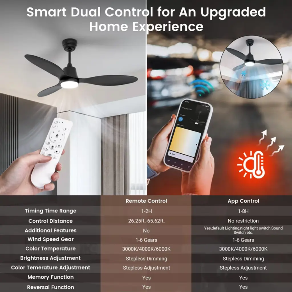 The Blitzhome Smart Ceiling Fan & Light combines a ceiling fan and LED light in one sleek design. It features a quiet, energy-efficient DC motor with 6 adjustable fan speeds and a reversible function for both cooling and heating. You can control the fan and light separately or together via the remote or WiFi app.The fan is easy to install with adjustable height options and is suitable for various room types, from bedrooms to home offices. Available in three colors and sizes, it is a stylish, functional addition to any space.SPECIFICATIONSElectric fan design: Ceiling FanPower Source: DCStyle: 3 BladesProduct Dimensions: 51.97"D x 51.97"W x 17.72"HSpecial Features: Easy to Install, App Control and Remote Control, 6 Wind Speed Gears and 1-8HTiming Time Range, Reversible Motor, 3 Color Temperatures and Stepless DimmingNoise Level: 35 dBWattage: 24 wattsFinish Type: PaintedNumber of Blades: 3Voltage: 120 VoltsCollection Name: Ceiling fanSwitch Type: RemoteIncluded Components: Light Kit, Remote, CordIndoor/Outdoor Usage: IndoorControl Method: App, RemoteLight Type: LEDPACKAGING INCLUDES1 x Ceiling fan with lightCONTACT USIf you have any problems with our items or services, please feel free to contact us any time.We are always online and do our best to solve your problems and provide you with the best customer services.