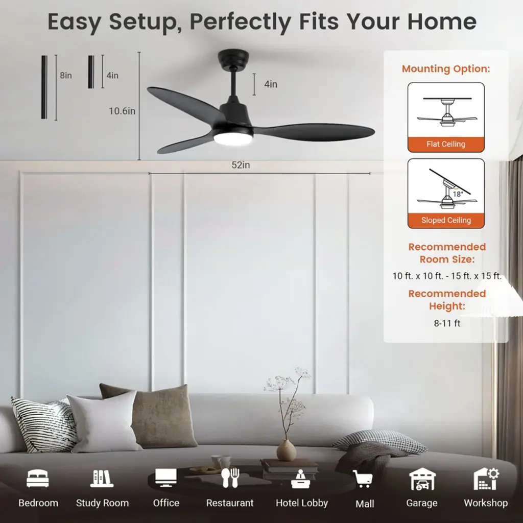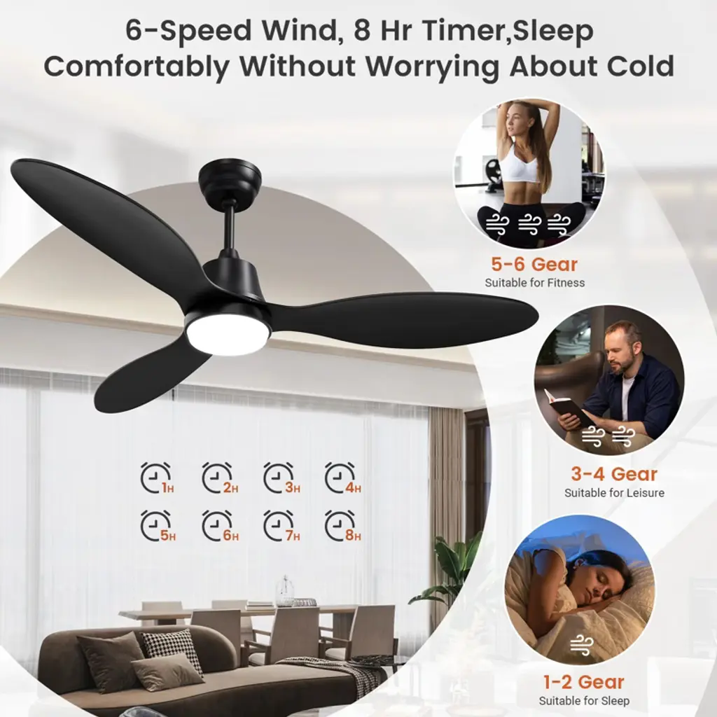 Blitzhome 52" 3-blade Smart Ceiling Fan With Led Light & Remote Control 6 Speeds For Bedroom Patio