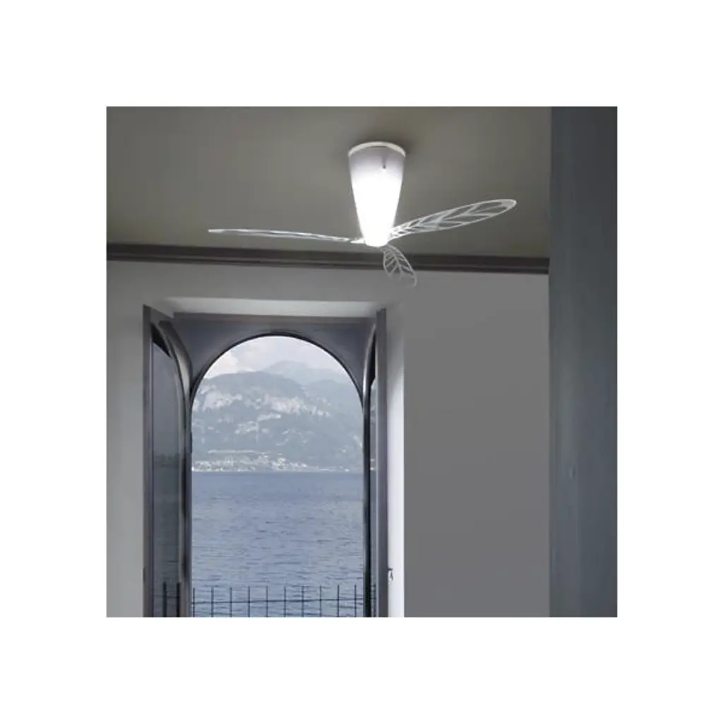 The Blow ceiling fan is truly unique. It is possible the only “fan with the light above its blades “ and is protected by an industrial patent. Thanks to its sophisticated electronics, both the light and the fan can be operated by an infrared remote control. Blow also has an operating switch that can be used to reverse the blade rotation so as to regenerate the continuous and one-way air flow. The blades, with their particular profile and transparency, make the light elegant and easy on the eye. The exceptionally quiet motor (only 32 dB), is mounted on ball-bearings inside the opaline polycarbonate bearing case. Features 3 speed settings. Material: Opaline methacrylate diffuser body. Transparent methacrylate blades. Aluminum motor on ball-bearings. Infrared remote control (included). White opal diffuser.