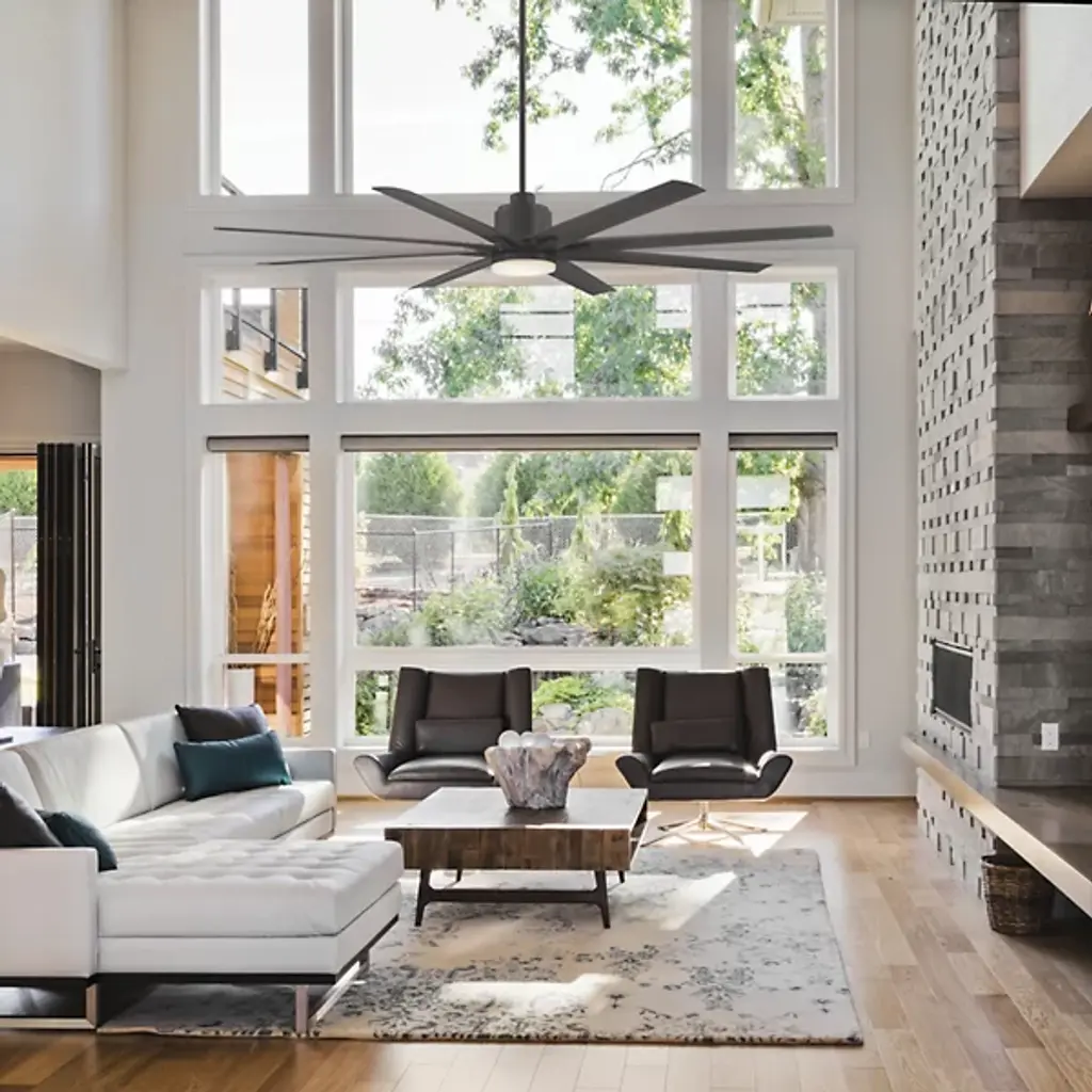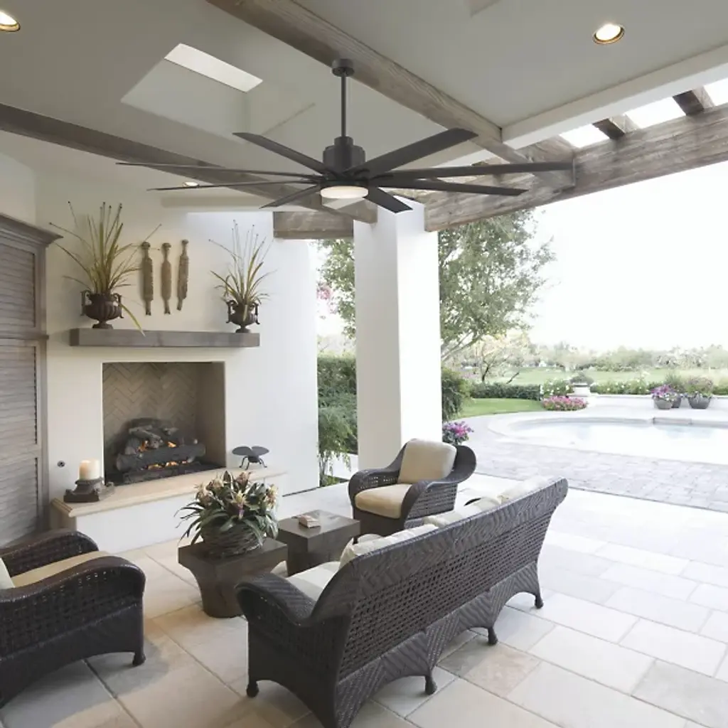 Massive in size and glory, the Savoy House Bluffton LED Ceiling Fan delivers 72 full inches of power to your patio for the sultry days that need it the most. Designed with straight-edged lines and a clean, architectural build, the Bluffton brilliantly combines form and function for the most efficient airflow an outdoor ceiling fan can give. Choose between 6 speeds of airflow for a gentle or windy current, and lounge easy knowing those hot, sultry days are long gone.