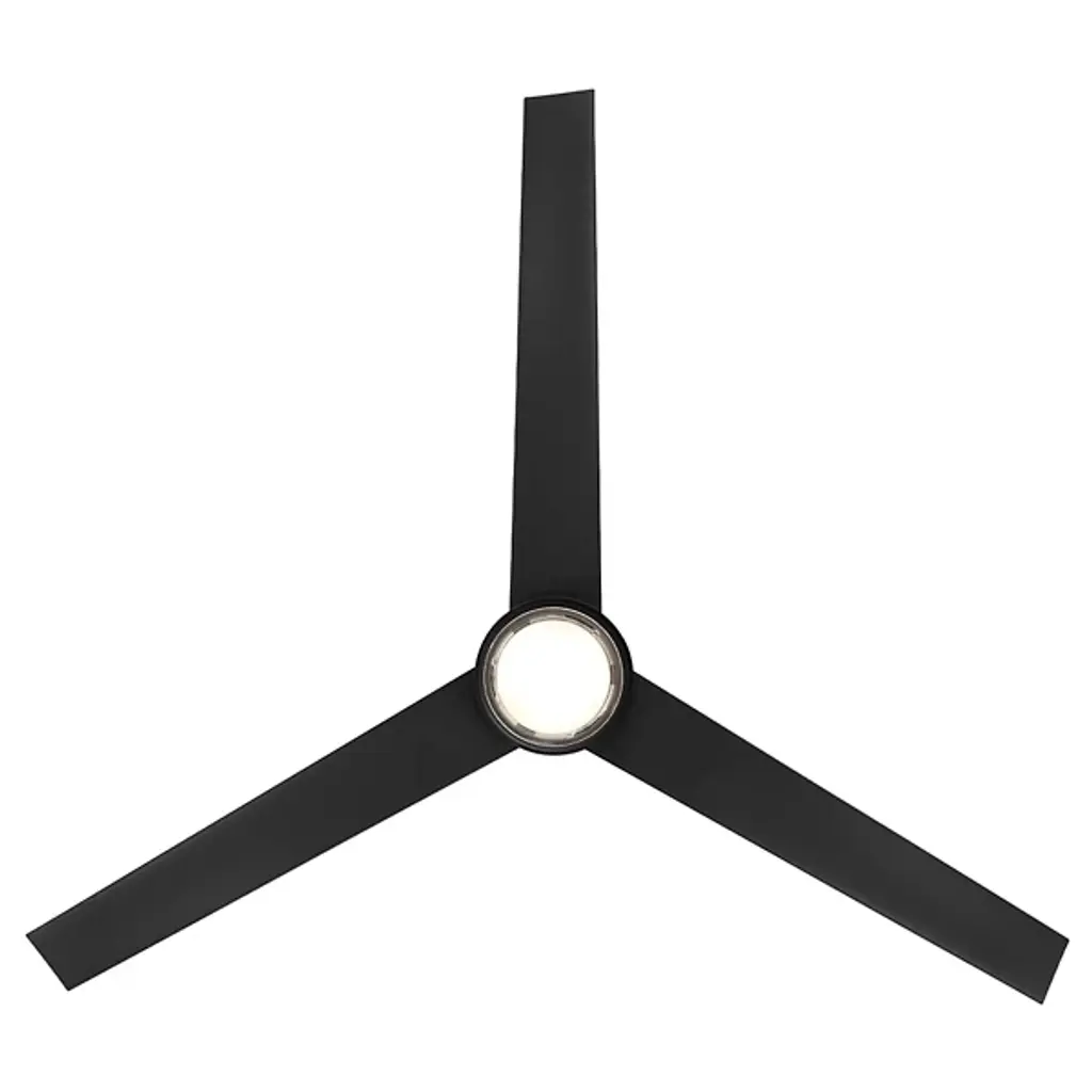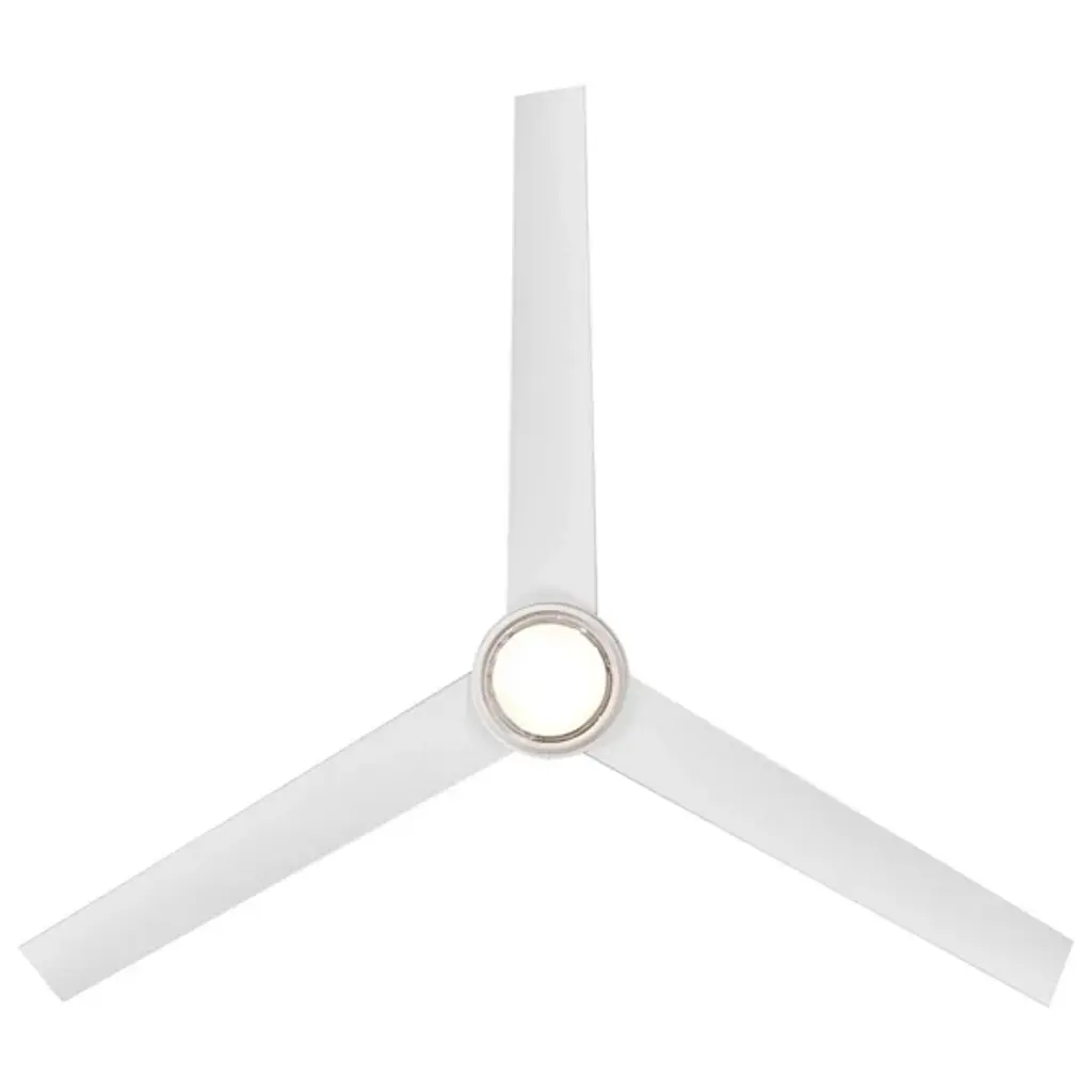 The Bolo Indoor/Outdoor Smart LED Ceiling Fan from Modern Forms features a contemporary design inspired by sleek jet aircraft, with a slim, aerodynamic three-blade configuration and compact motor housing accented by a subtle ring detail. A dimmable CCT LED light offers versatile illumination, with a matching cover included for a streamlined look. Powered by a quiet, energy-efficient DC motor, Bolo pairs effortlessly with smart home systems through the Modern Forms app, allowing seamless voice control via Google Home, Amazon Alexa, and Samsung SmartThings.