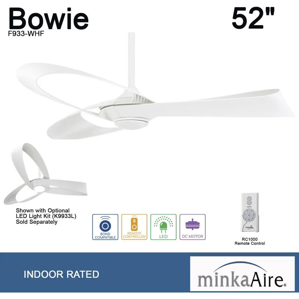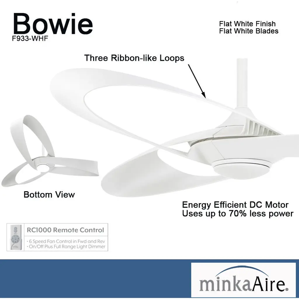 This Ceiling Fan from the Bowie collection by Minka-Aire will enhance your home with a perfect mix of form and function. The features include a Flat White finish applied by experts. This item qualifies for free shipping!